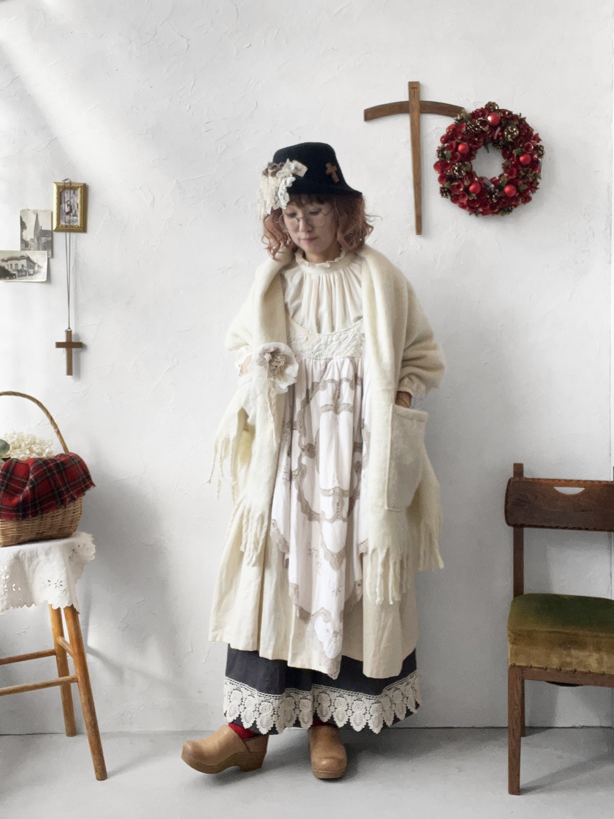 ▼お洋服とショールの2点以外の、撮影で使用している小物は付きません。