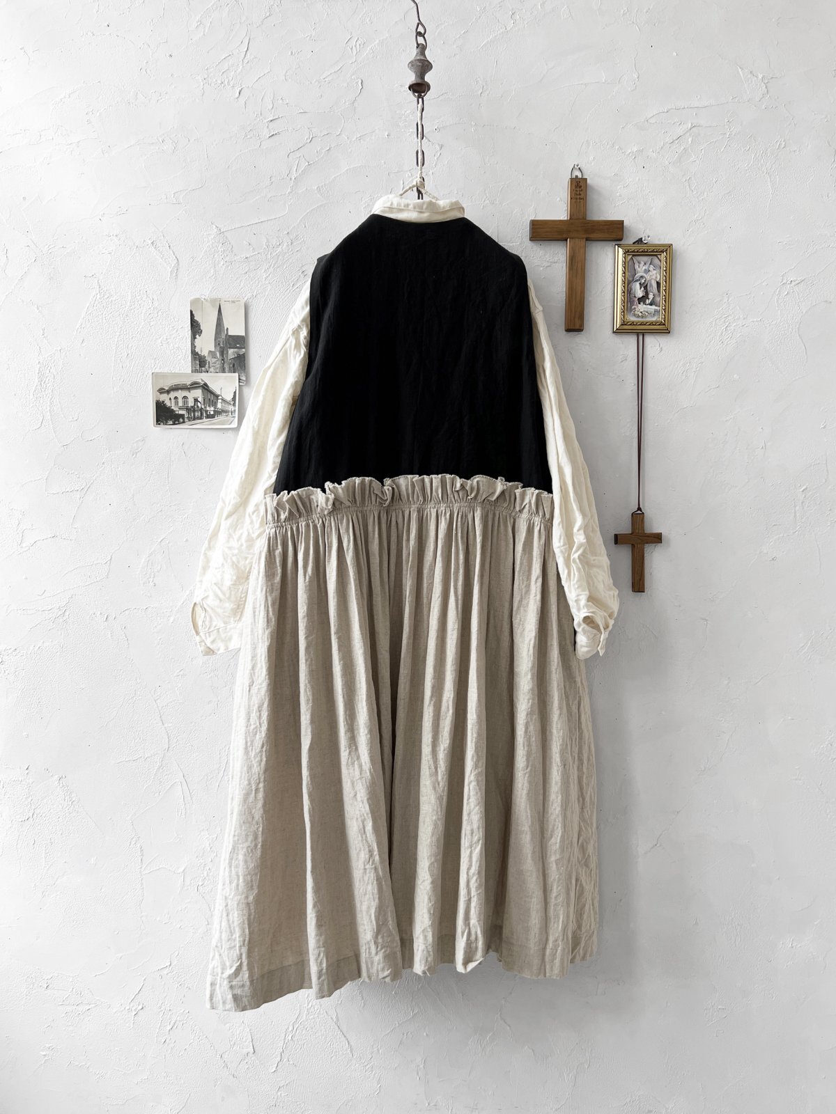 MARCHE' DE SOEUR/リネンのベストワンピース・黒×生成り [MDS251202]