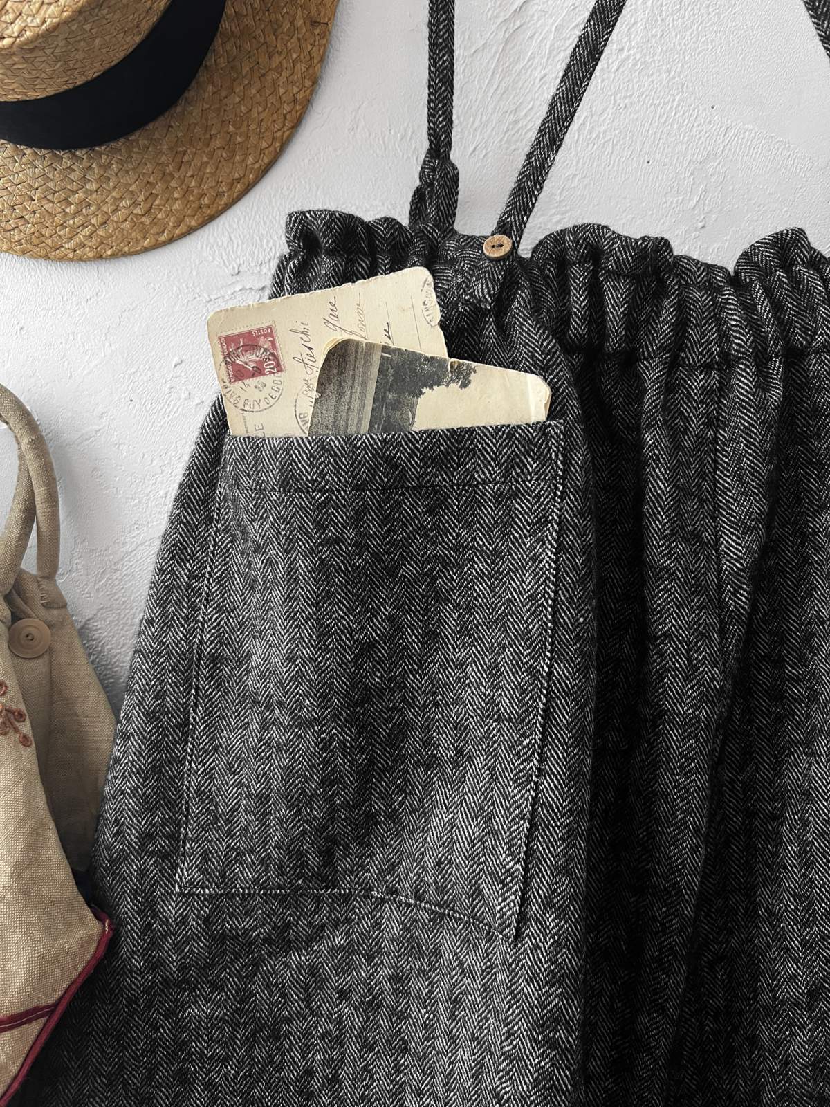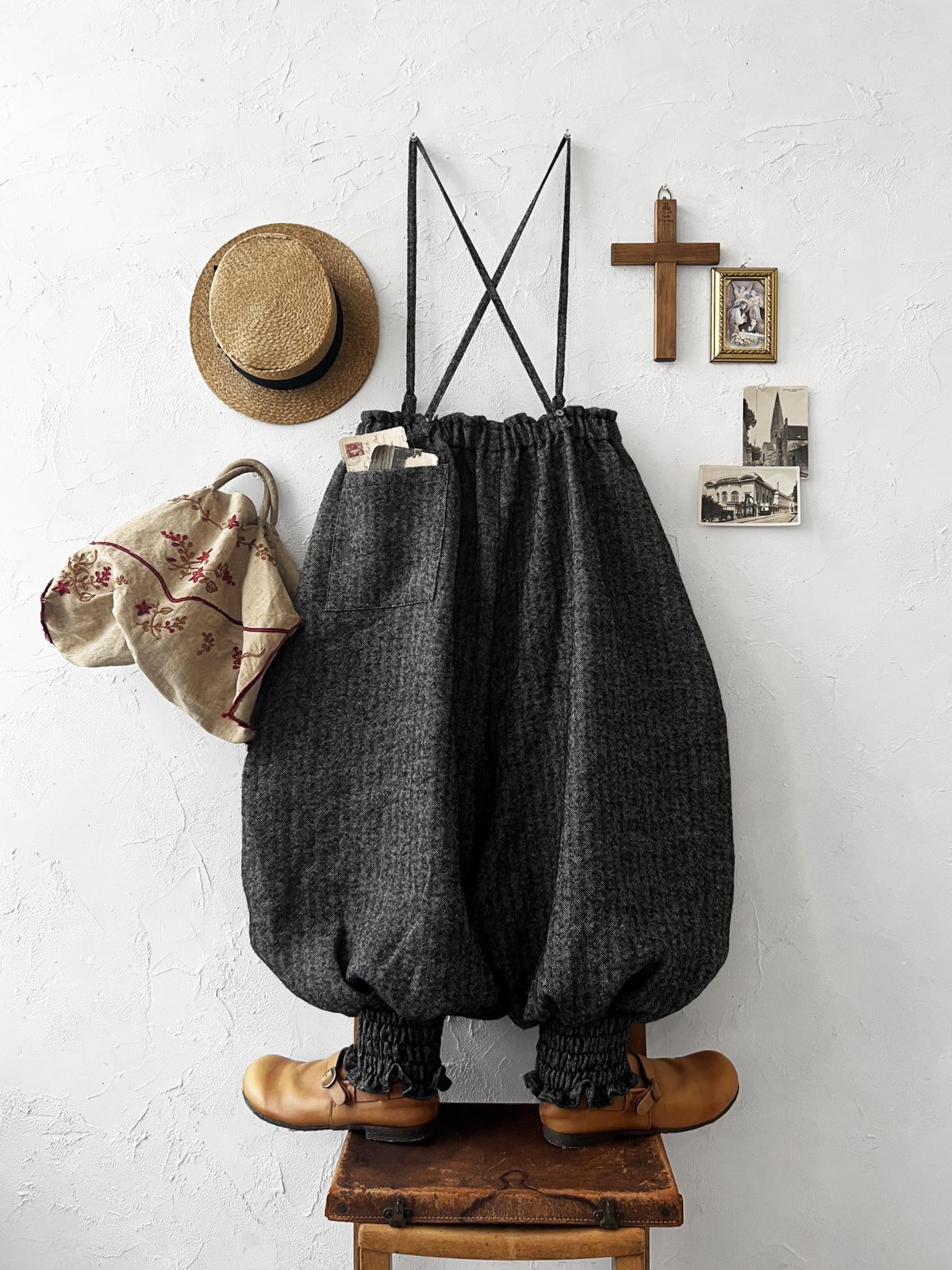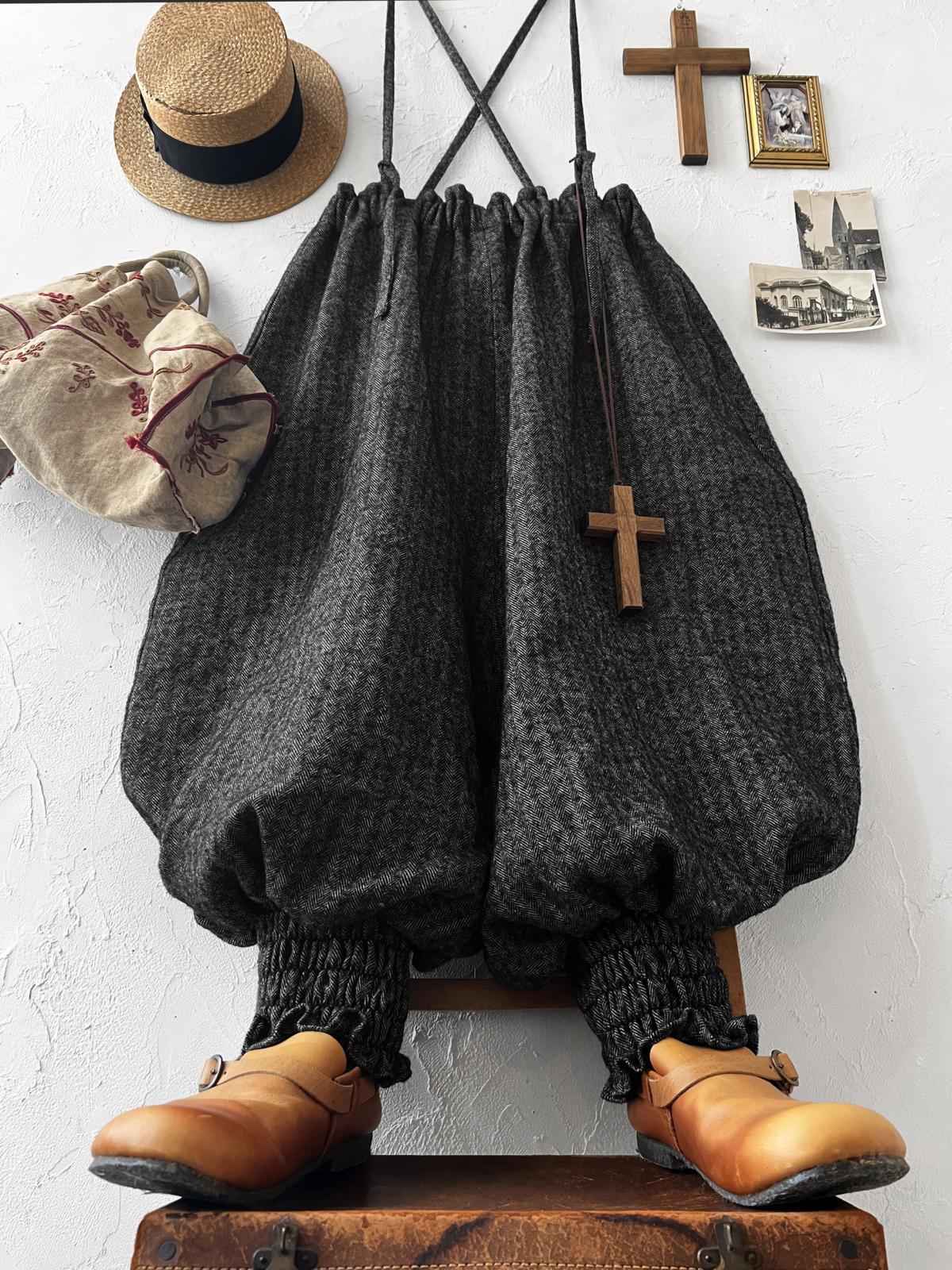 MARCHE' DE SOEUR/シェットランドウールリネン ピエロパンツ・杢ブラック [MDS251218]