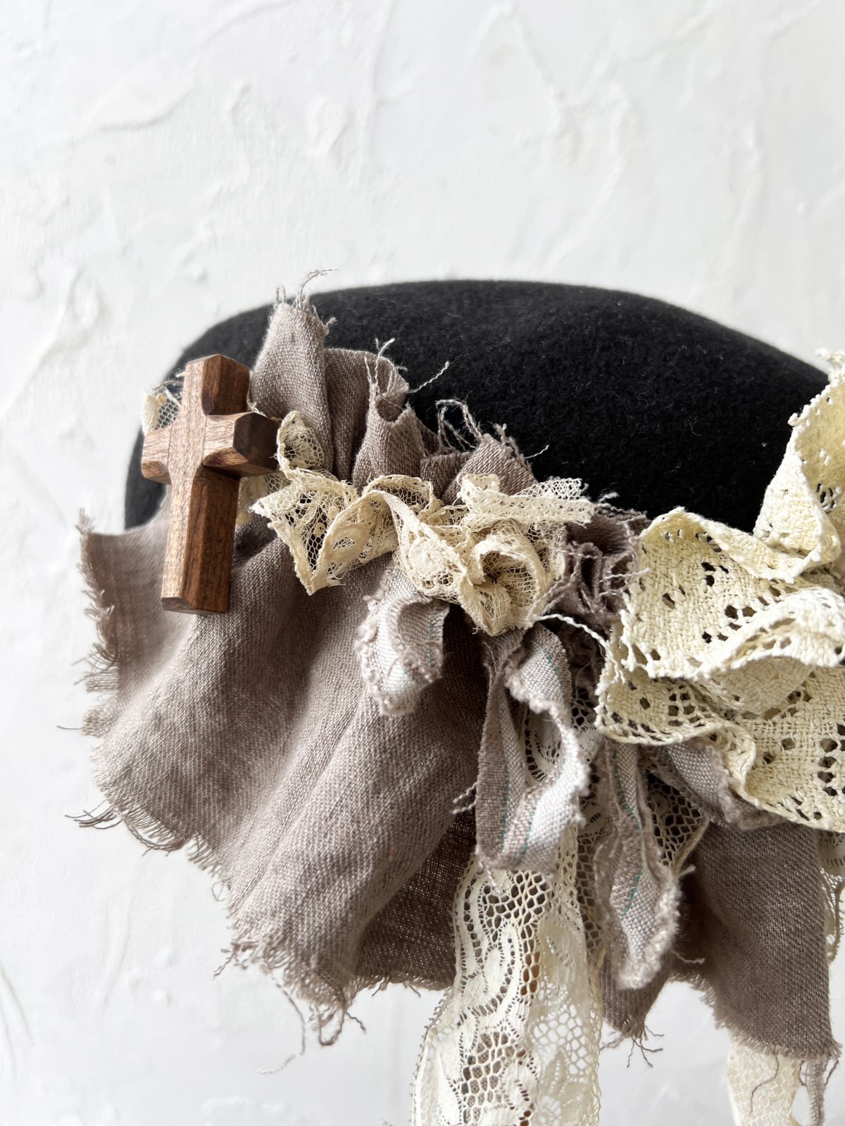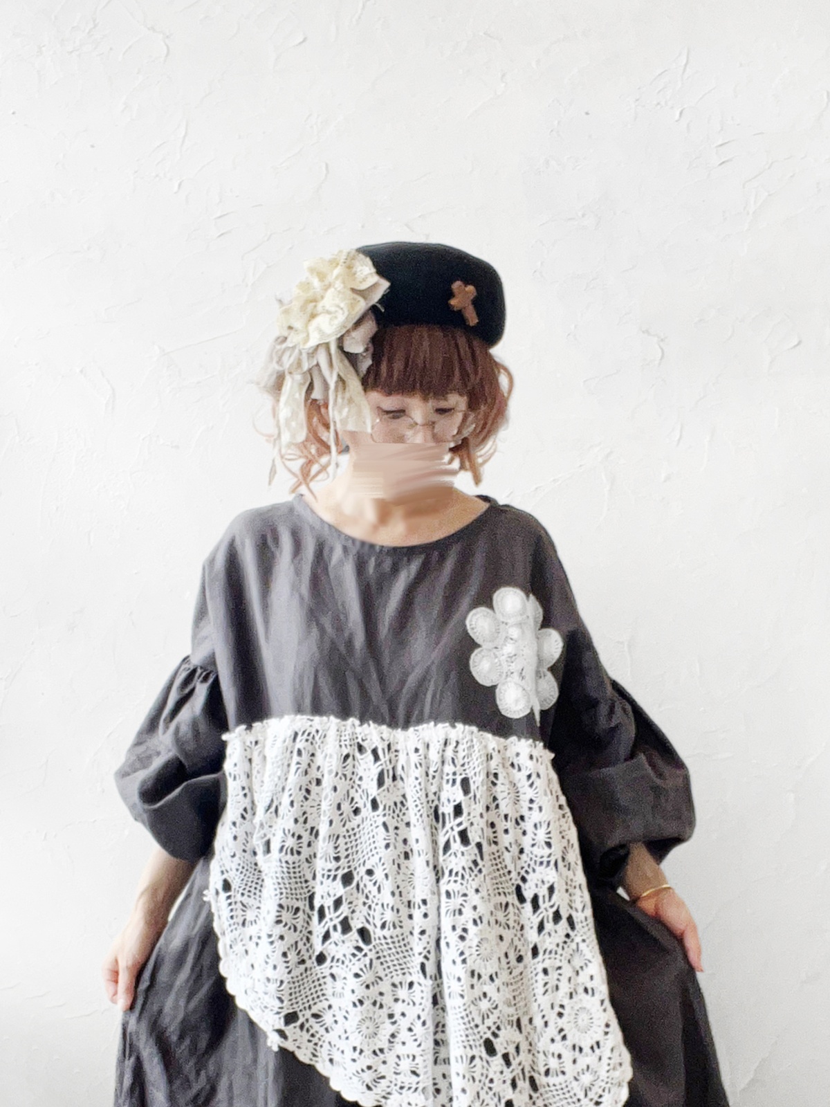 pollenbienco/アンティークレースのベレー帽・黒 [POL251110]
