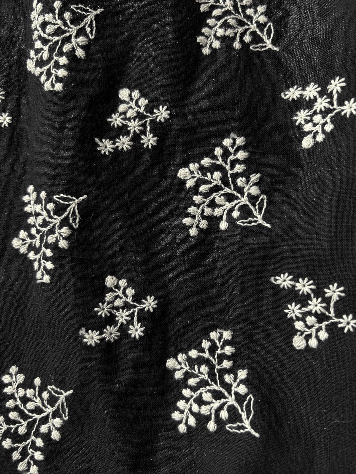生地は黒地にアイボリーのブーケ刺繍が入ったコットンリネンで