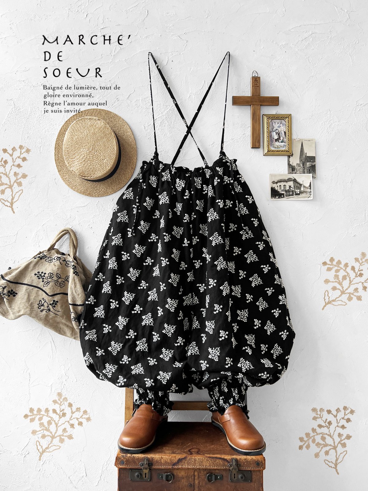 MARCHE' DE SOEUR/ピエロパンツ・黒ブーケ刺繍 [MDS251220]