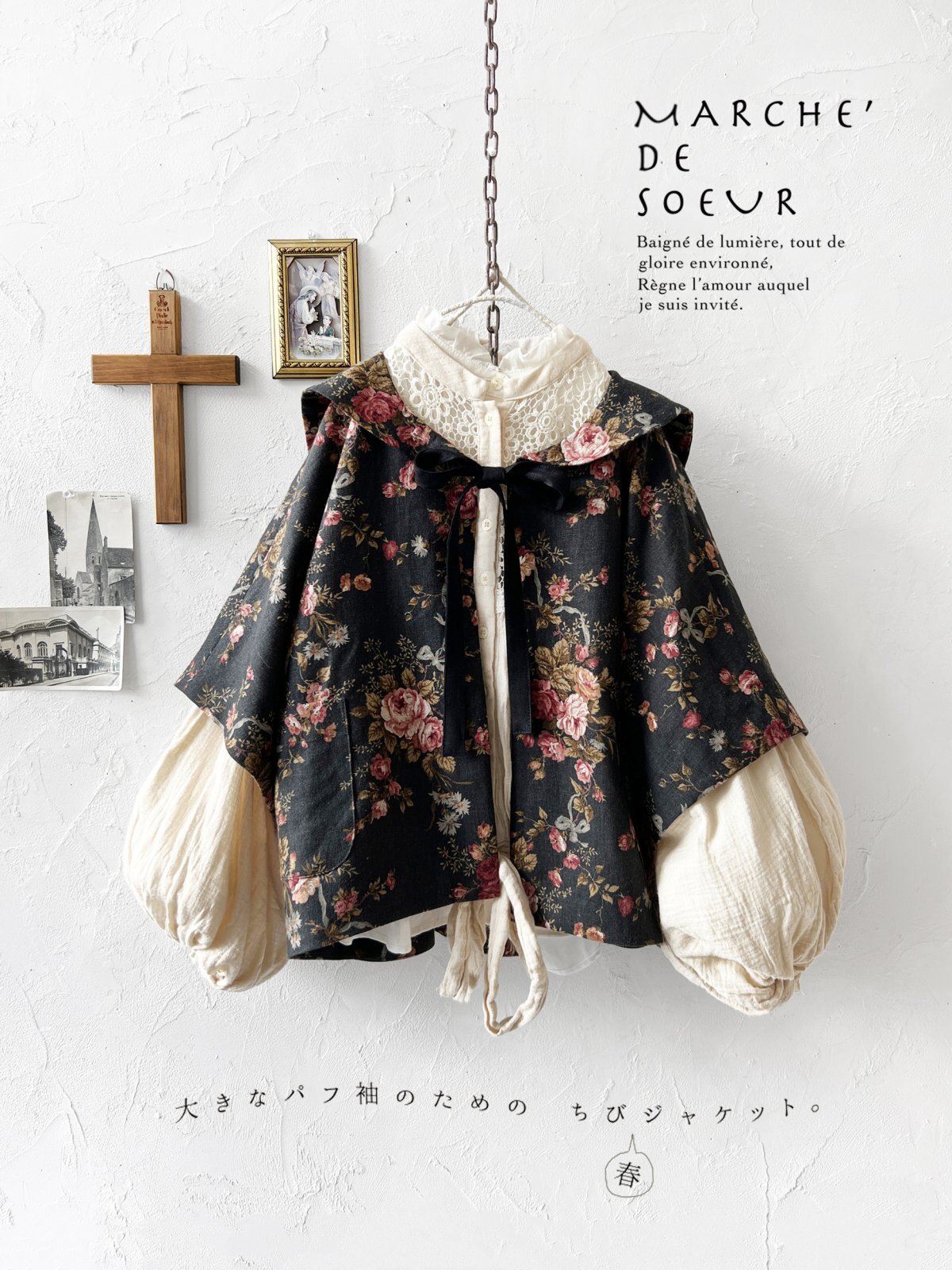 MARCHE' DE SOEUR/セーラ襟のタッセルちびジャケット・オールドローズ スミクロ [MDS251208]