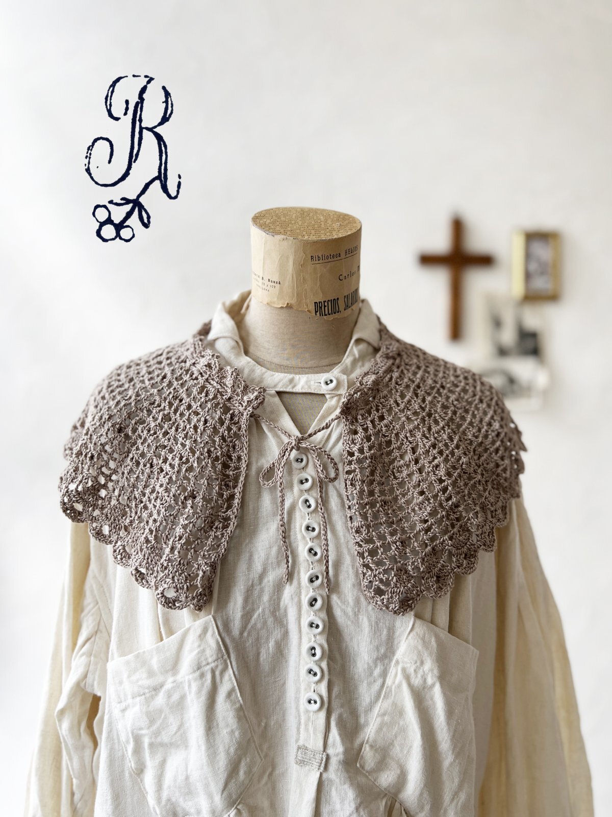 R./手編みの付け襟・グレージュ