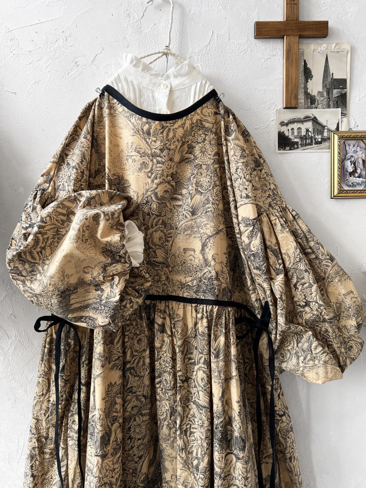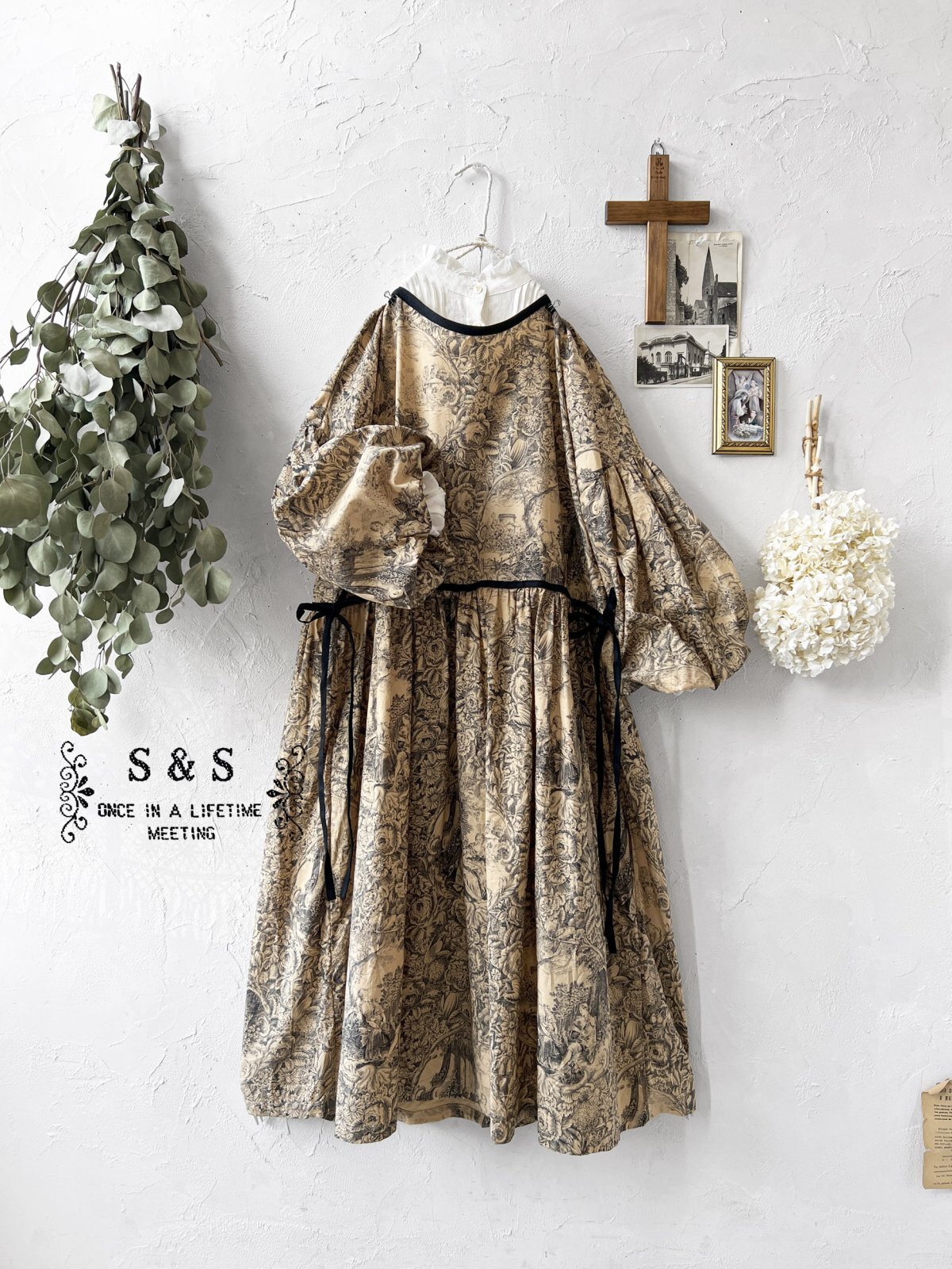 shizuka's/トワルドジュイのリボンワンピース(パフスリーブ)ベージュ [SIZ251201]