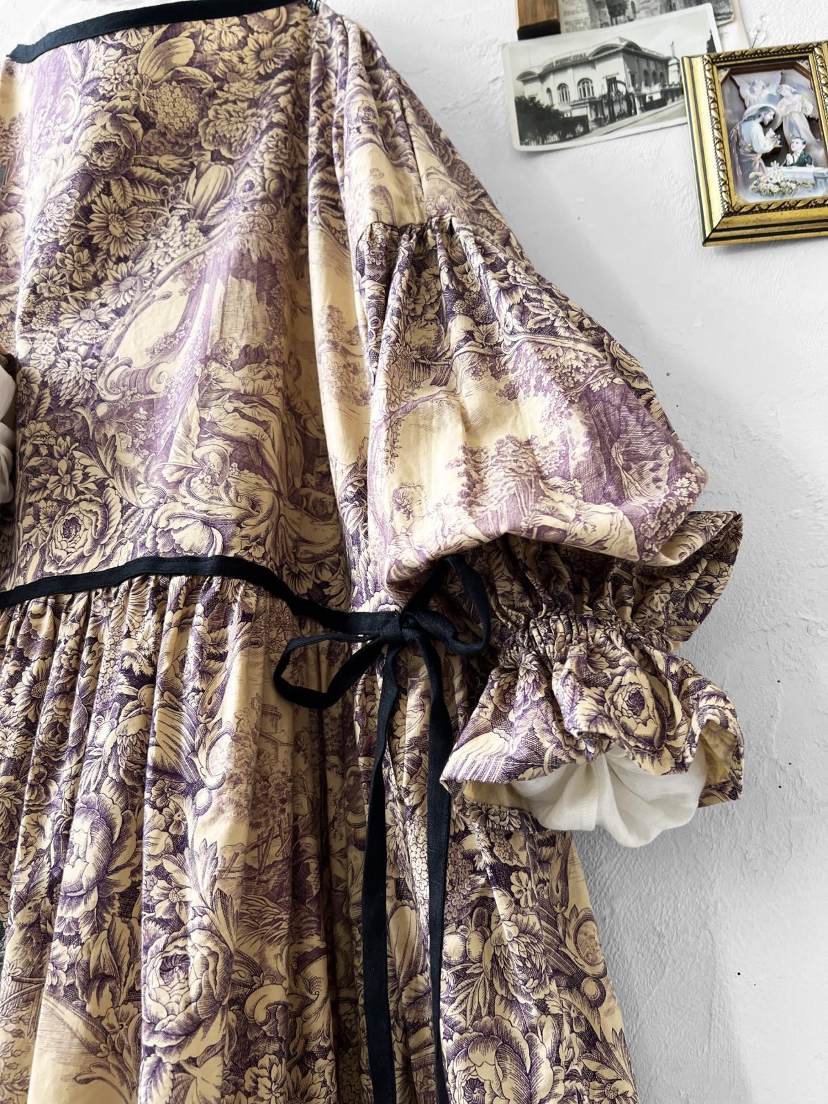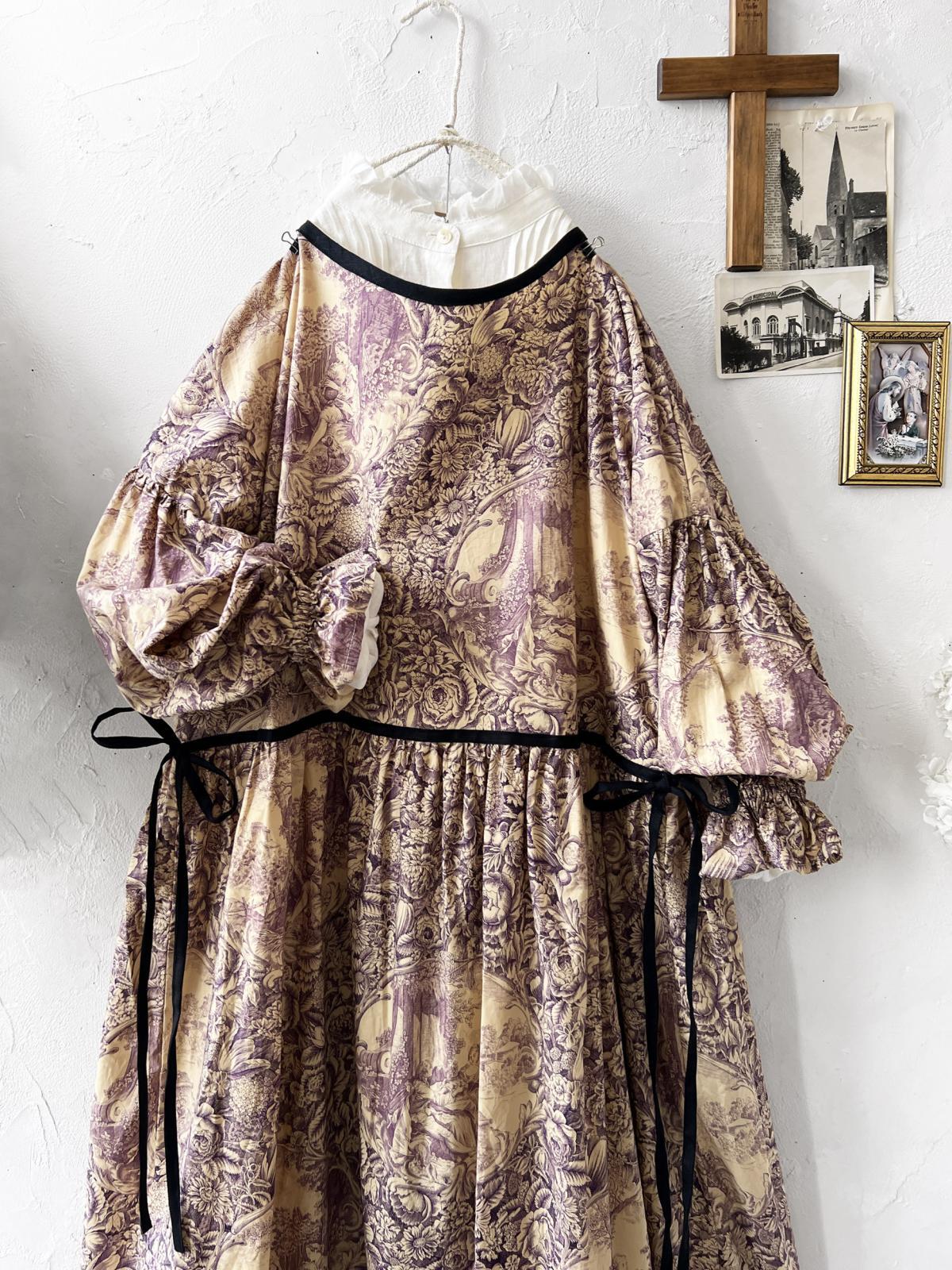 shizuka's/トワルドジュイのリボンワンピース・(ベルスリーブ)山葡萄 [SIZ251201]