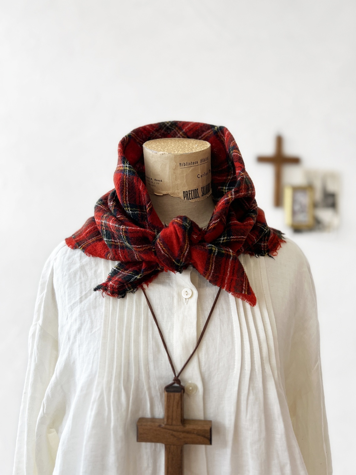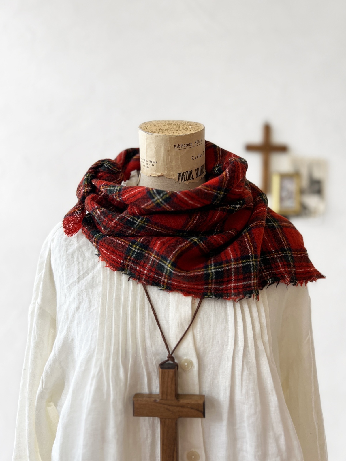 MARCHE' DE SOEUR/ウールガーゼのストール・赤チェック