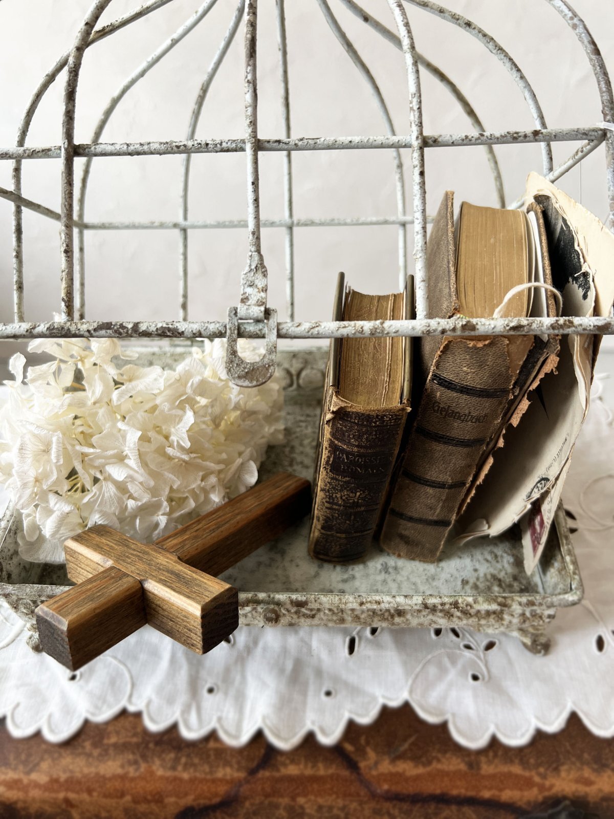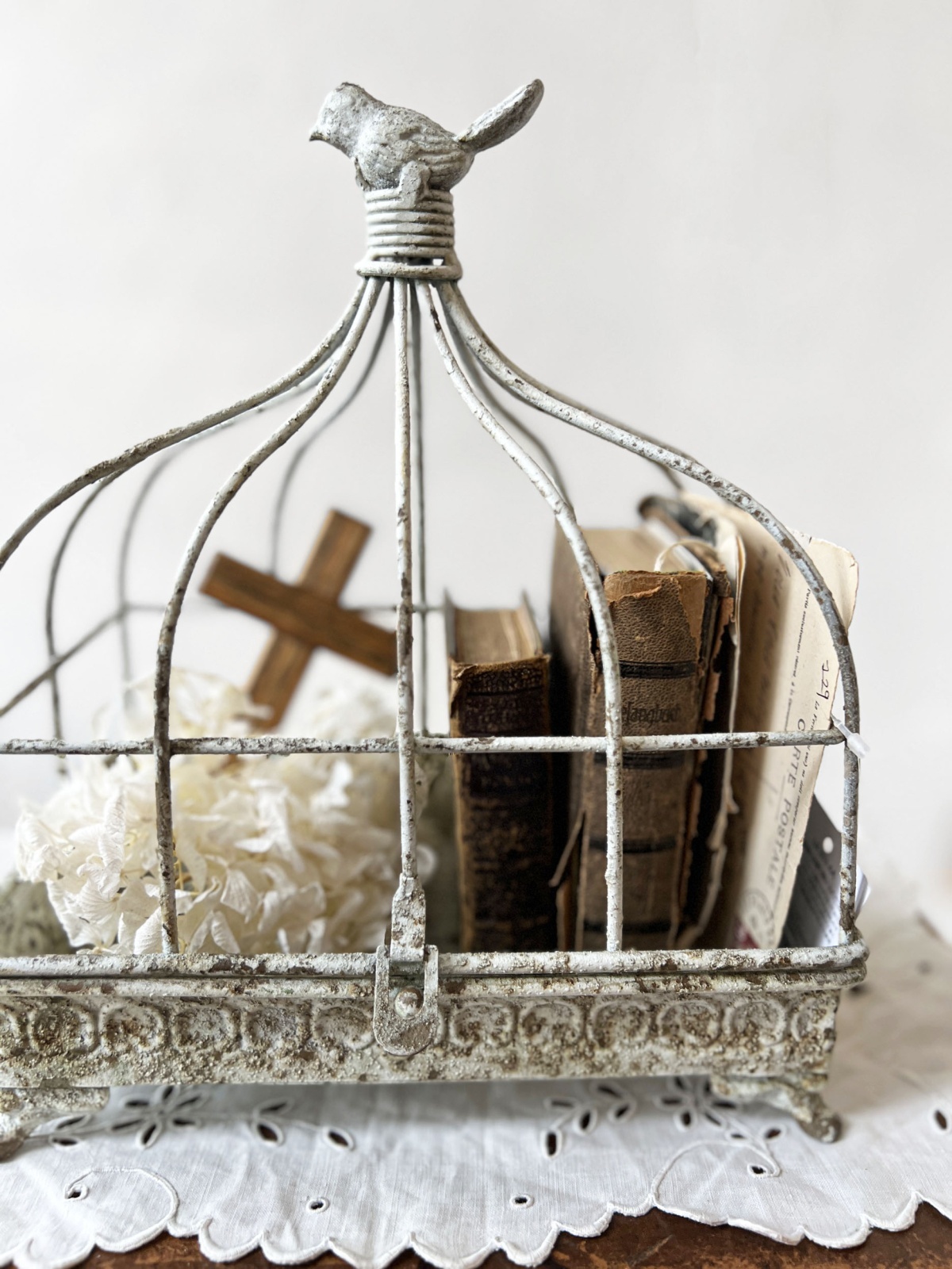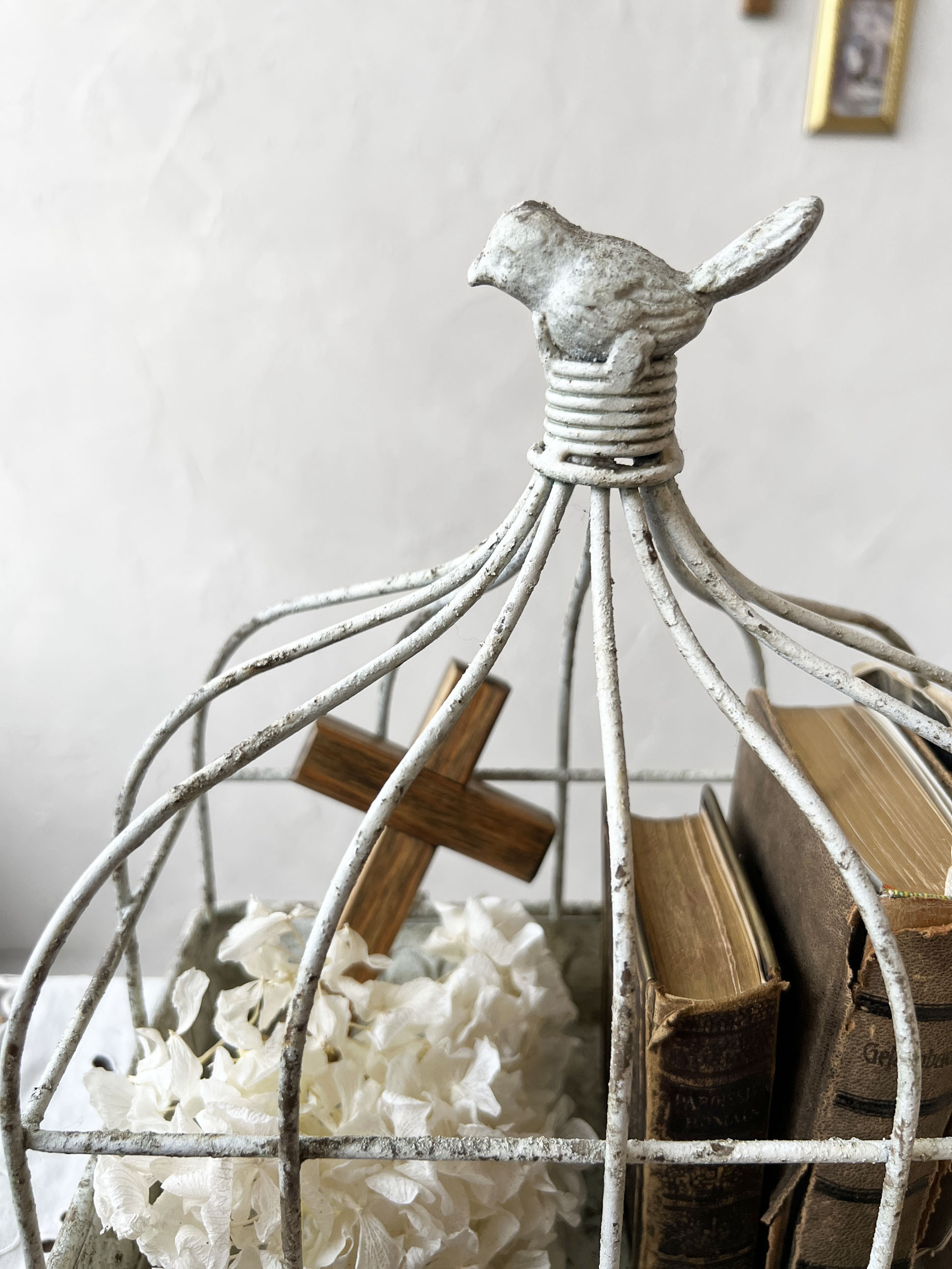 アンティーク加工を施したアイアンの鳥かご。