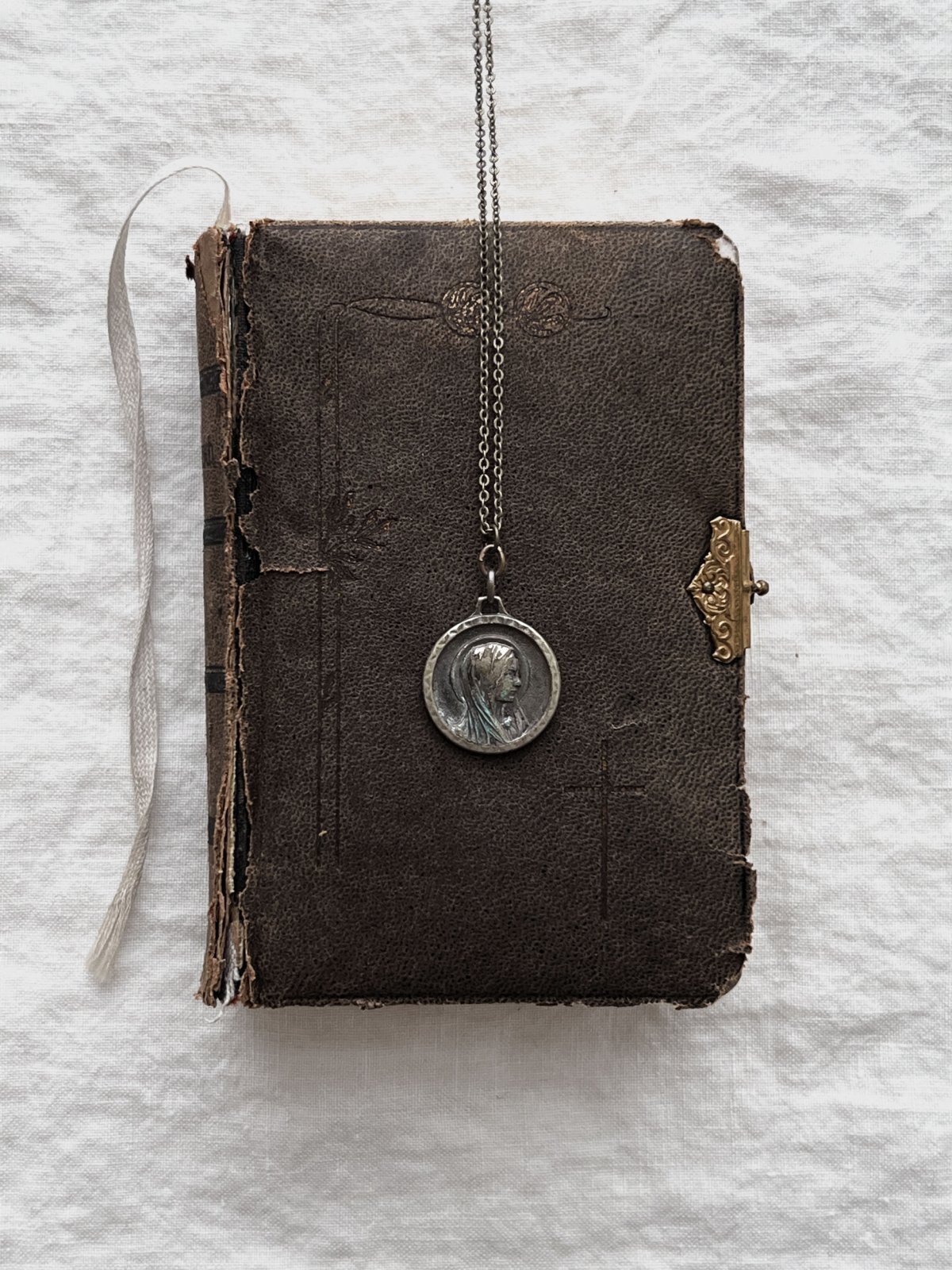 カトリックのお守り(メダイ)で、聖母と少女が描かれ、
