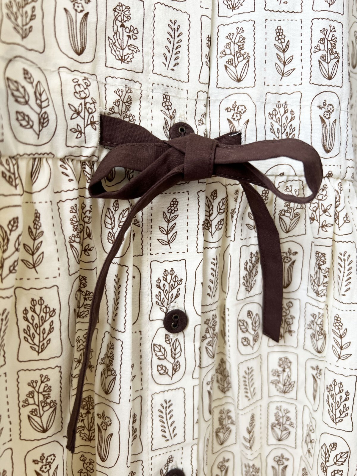 ボタニカルプリントの柄が可愛いワンピースです。