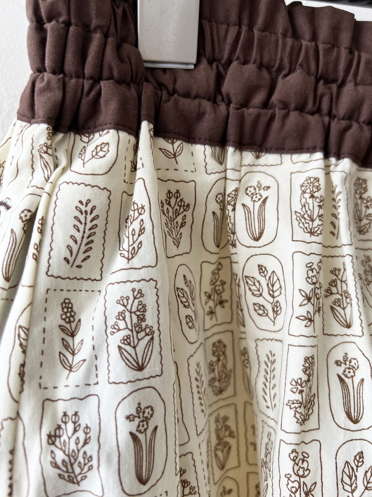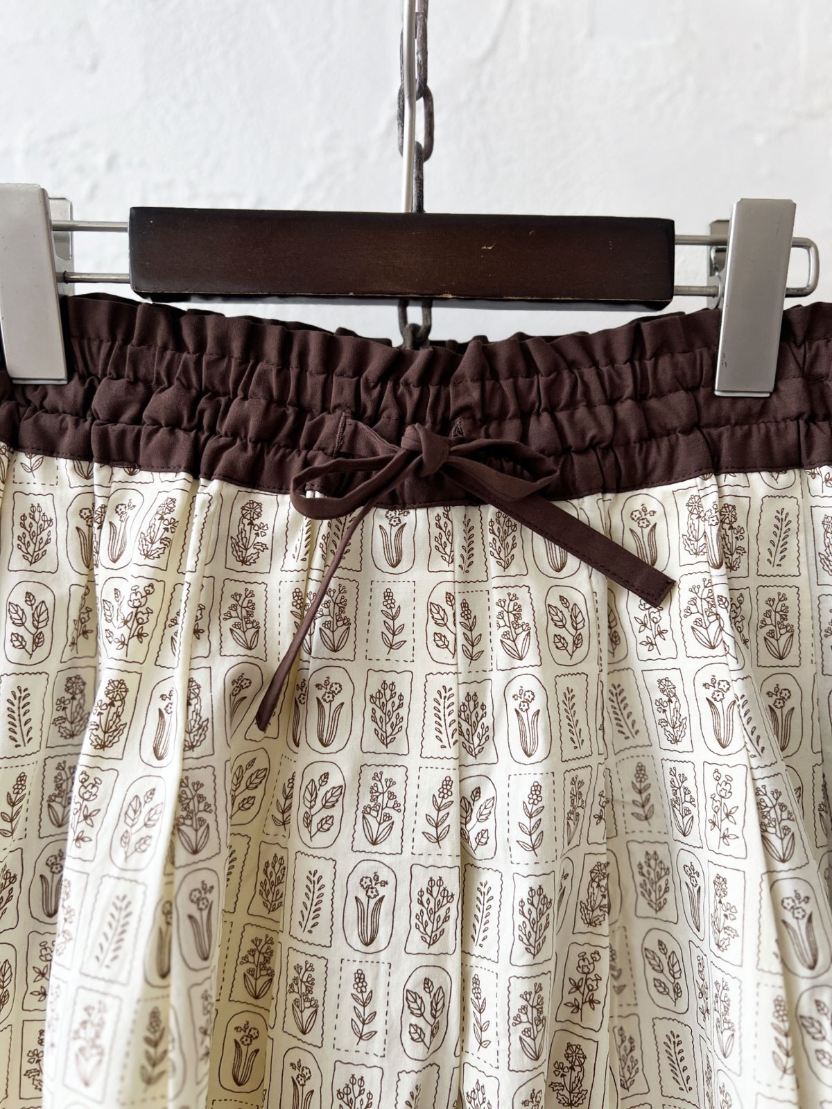 ボタニカルプリントの柄が可愛いスカートです。