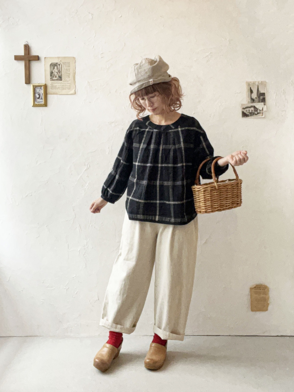 le ciel a tempsdoux/先染めチェックブラウス・黒 [DEA260115]