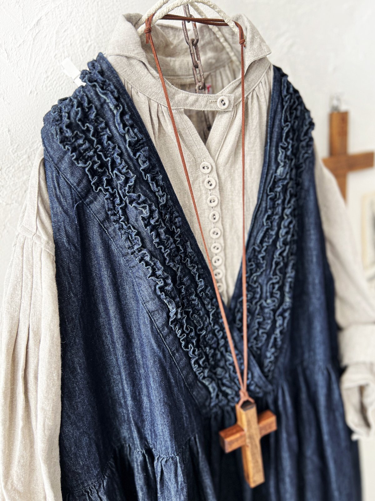 ubasoku/0030 2wayフリルジャンパースカート・インディゴ [BNT260208]