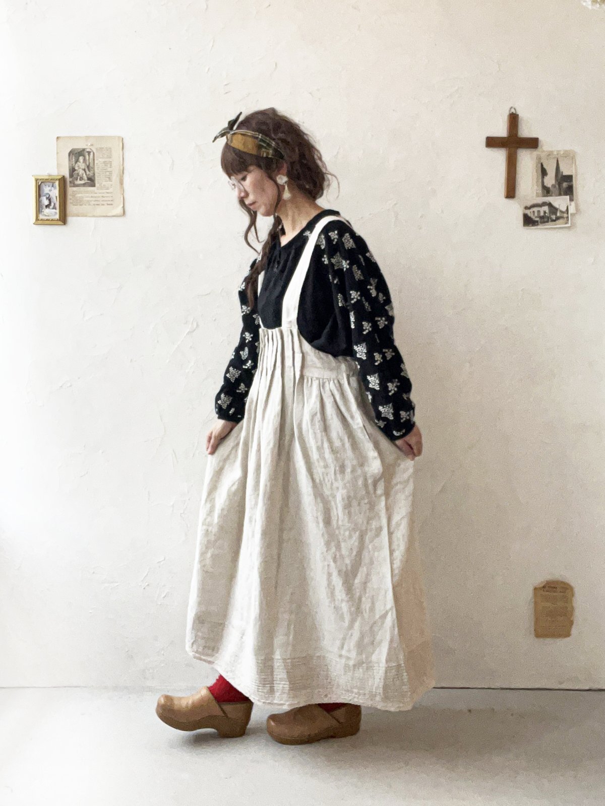 ubasoku/0023 裾レースのタックジャンパースカート・ナチュラル [BNT260207]