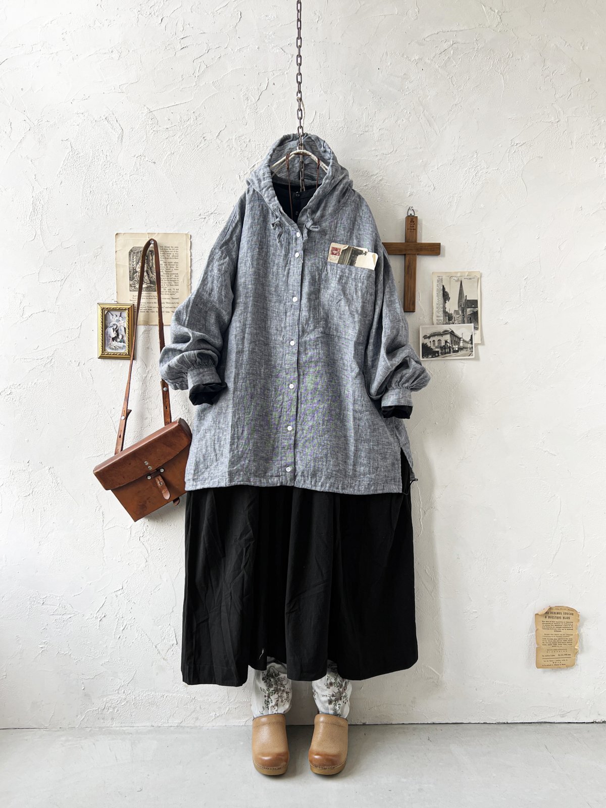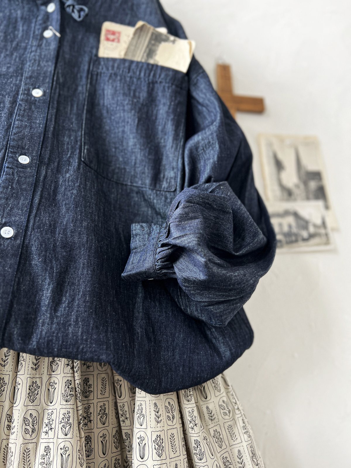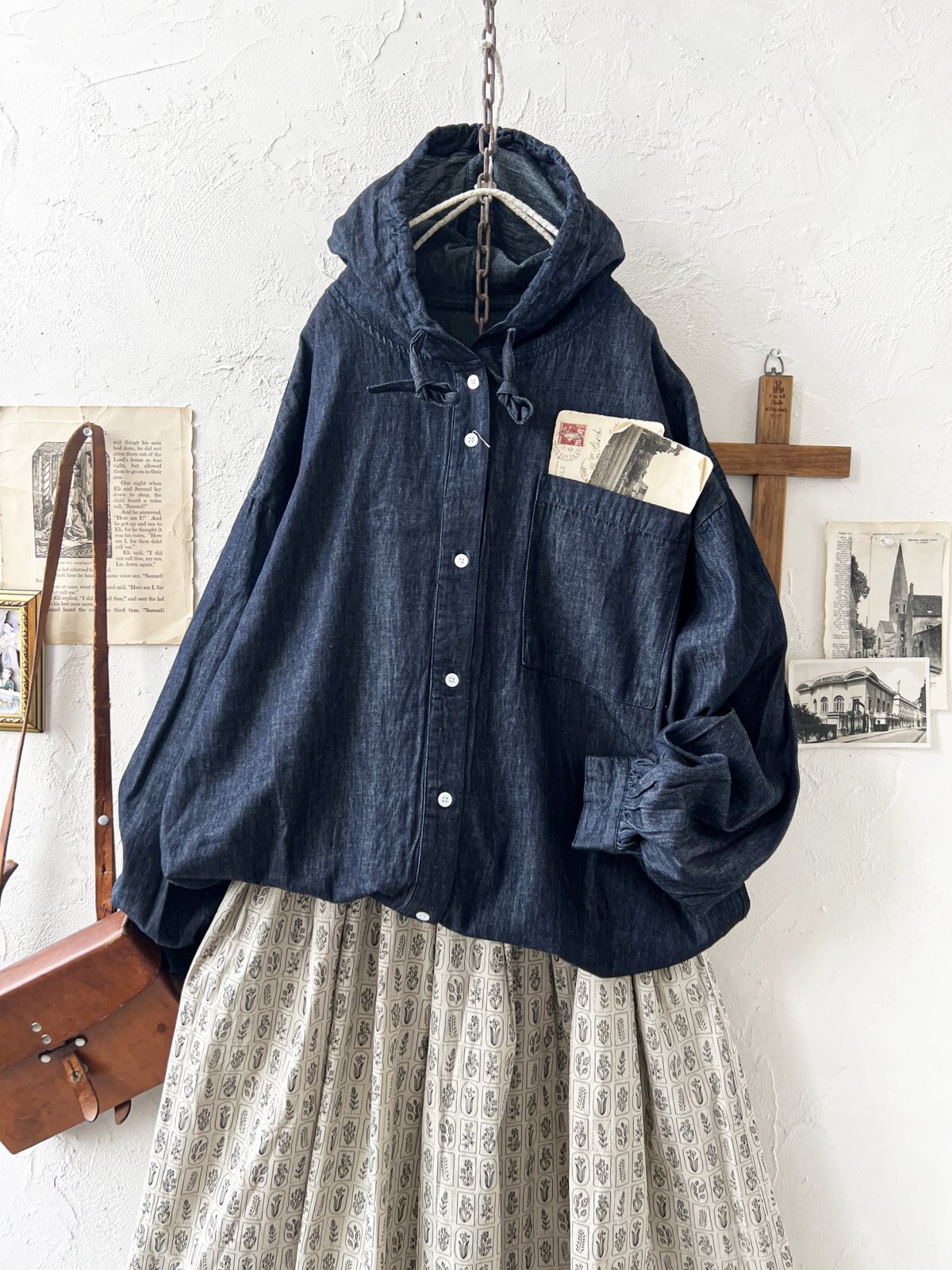 ubasoku/0017 フード付きデニムバルーンブラウス・インディゴ [BNT260202]