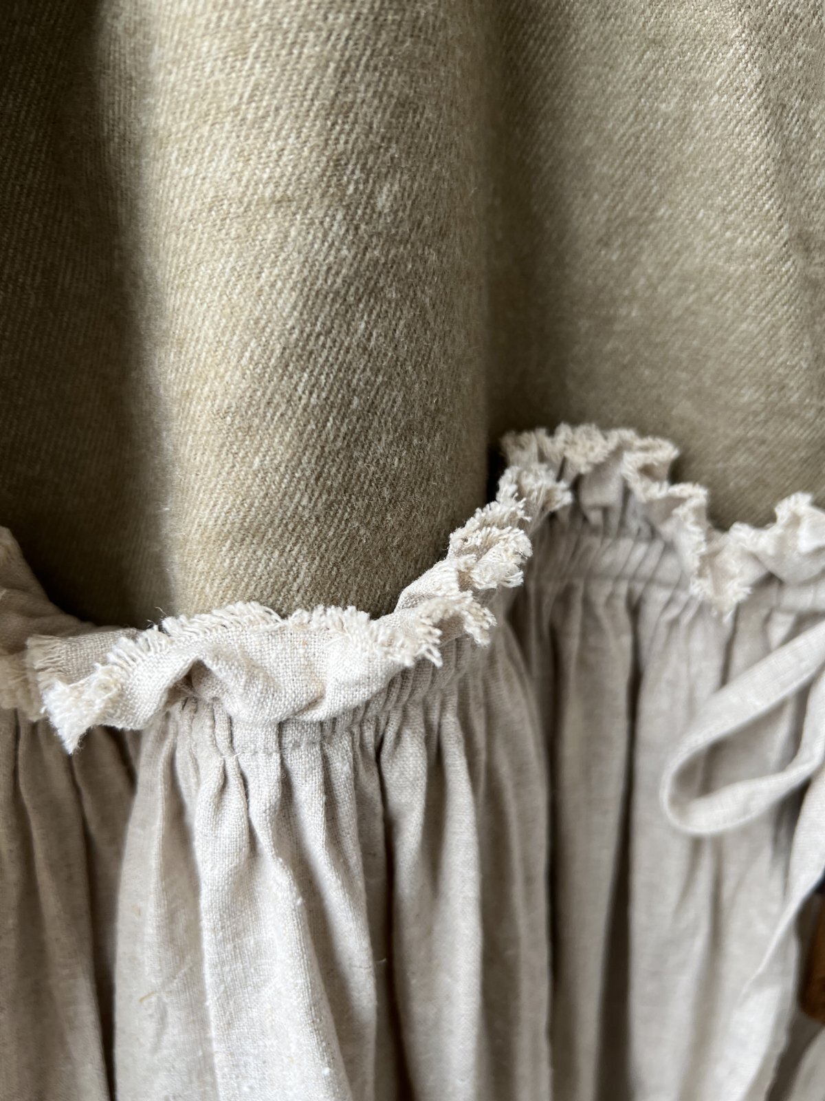 スカート部分はベーシックなヨーロッパリネンのベストワンピースです。