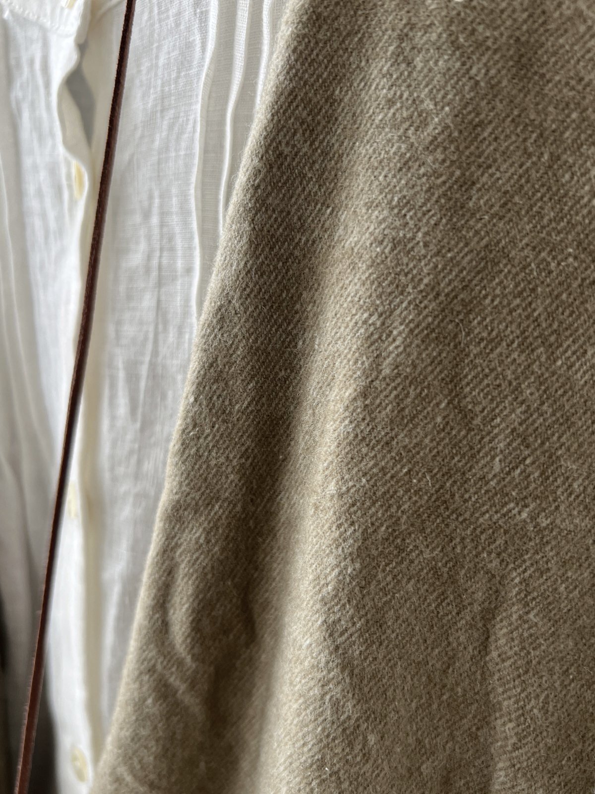 ベスト部分はオリーブベージュの起毛ソフトツイル、