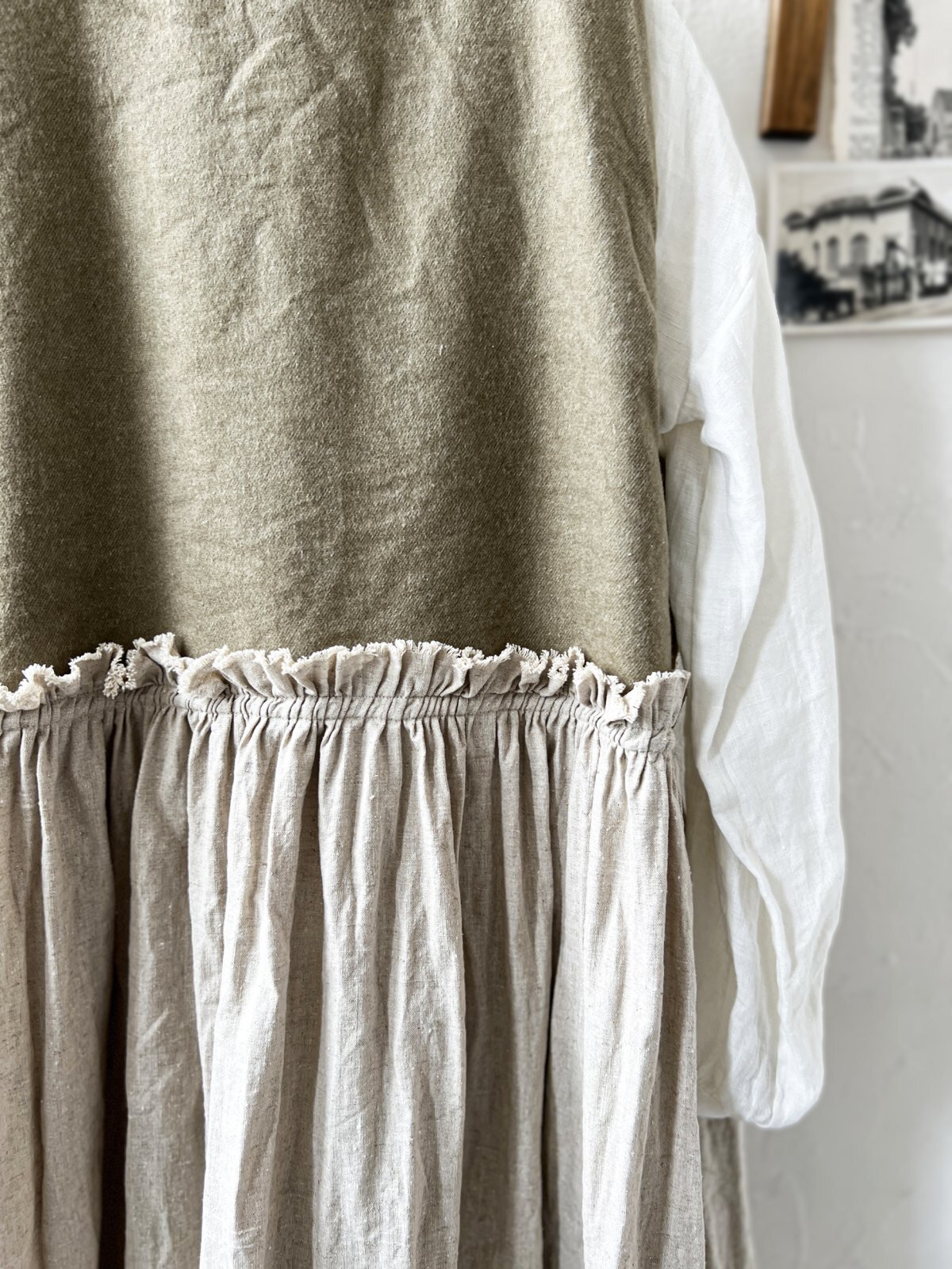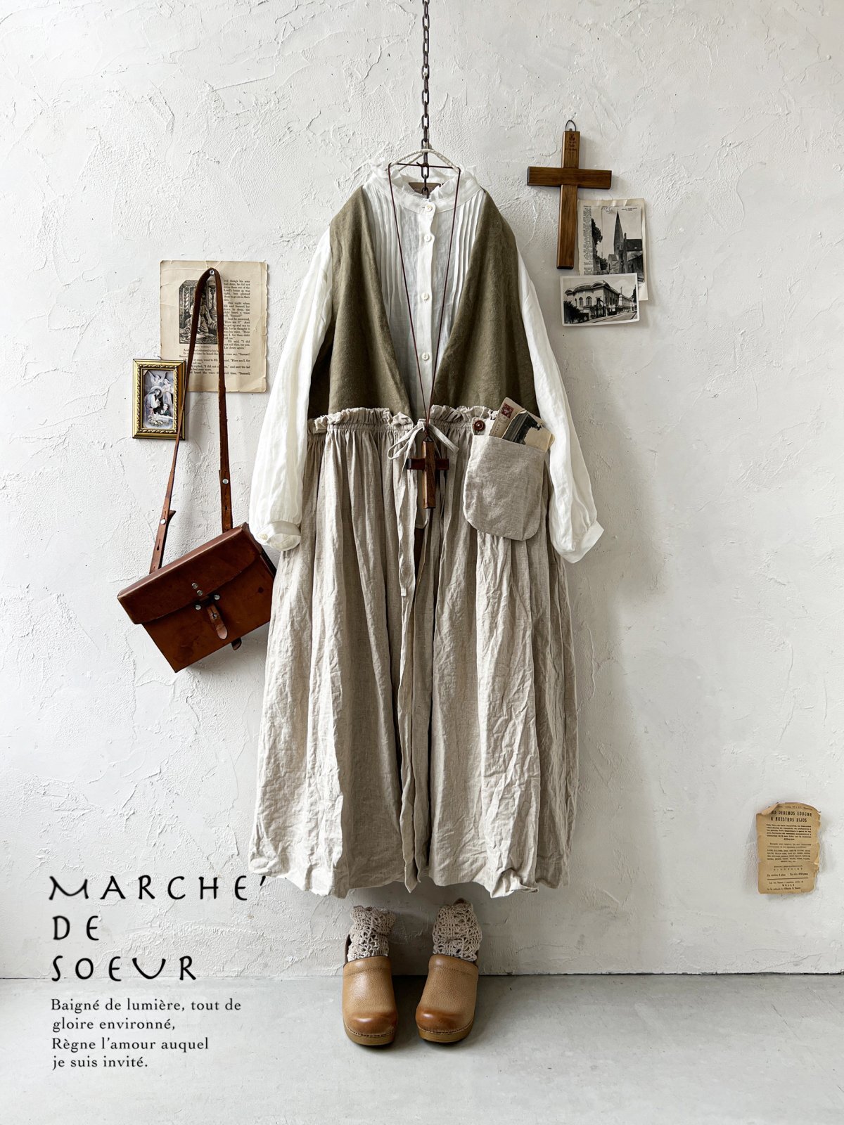 MARCHE' DE SOEUR/ベストワンピース・オリーブベージュ×生成り [MDS260203]