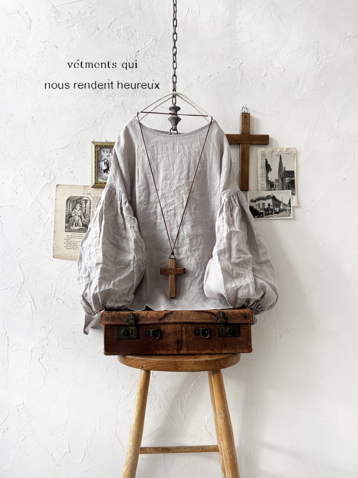 nous rendent heureux/バルーン袖ブラウス・ライトグレー [SLS260203]