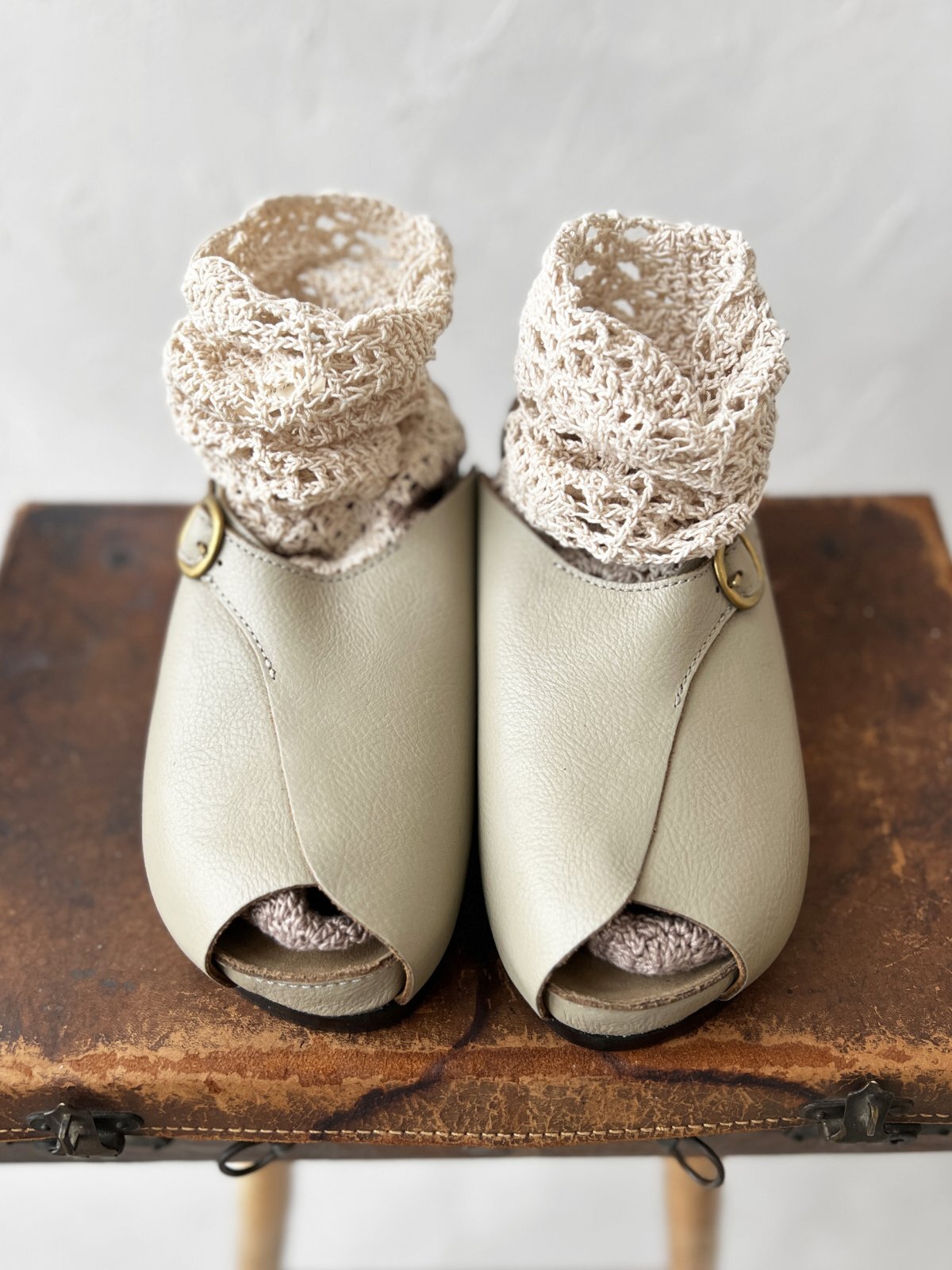 オープントゥなのでカラーや柄物ソックスを覗かせても