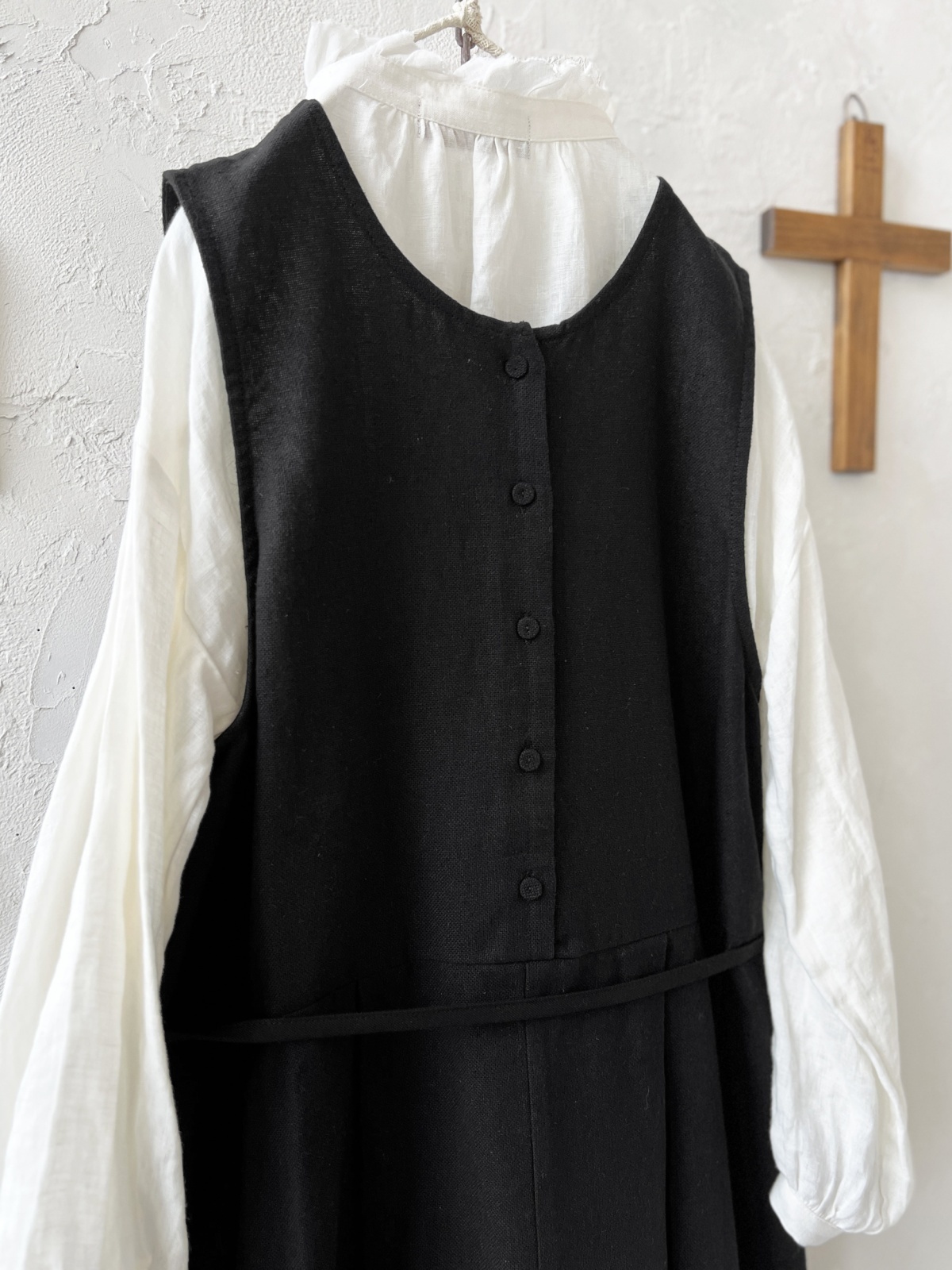 前後着用できるので、ボタンを前にしたり後ろにしたり、