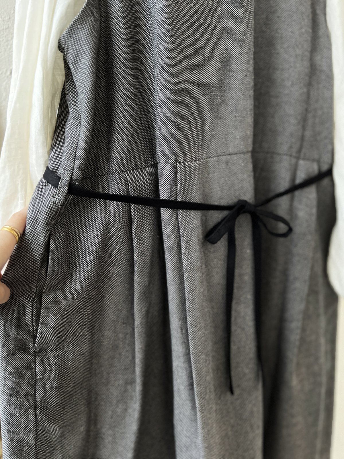 ウエストマークになるリボンは取り外しも可能。