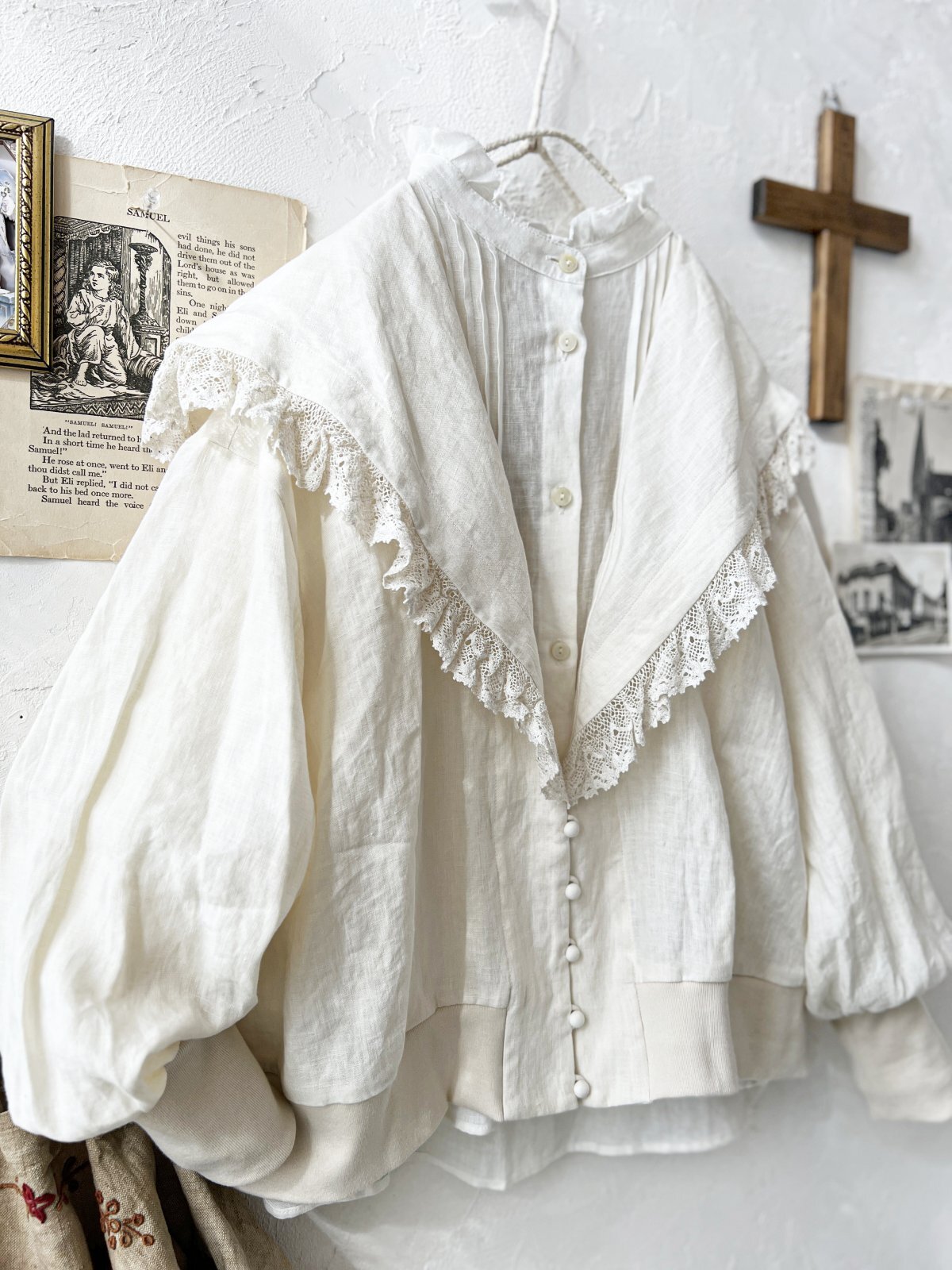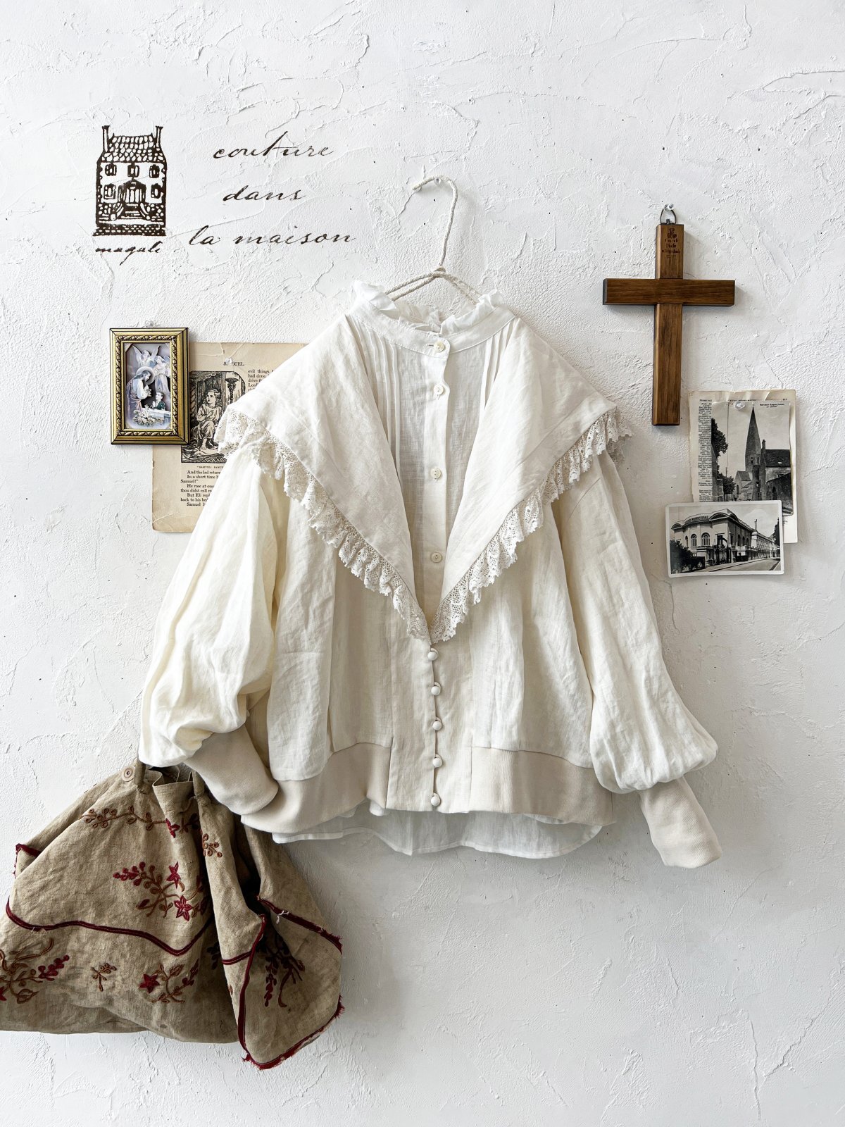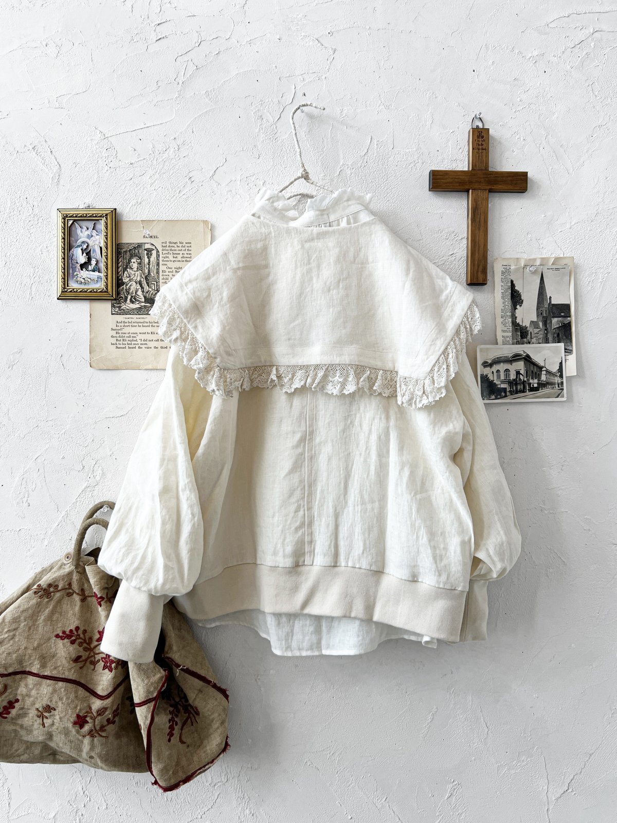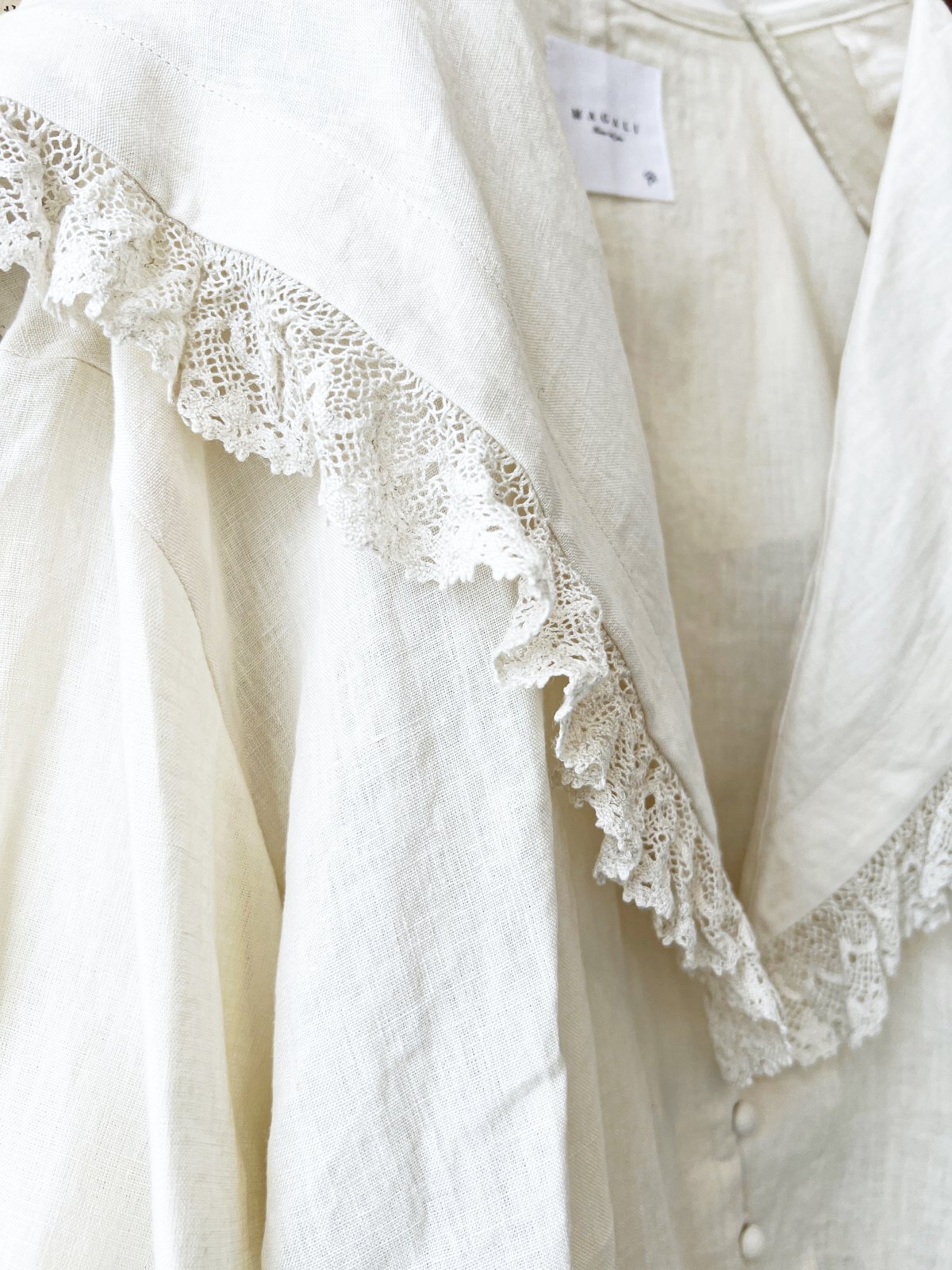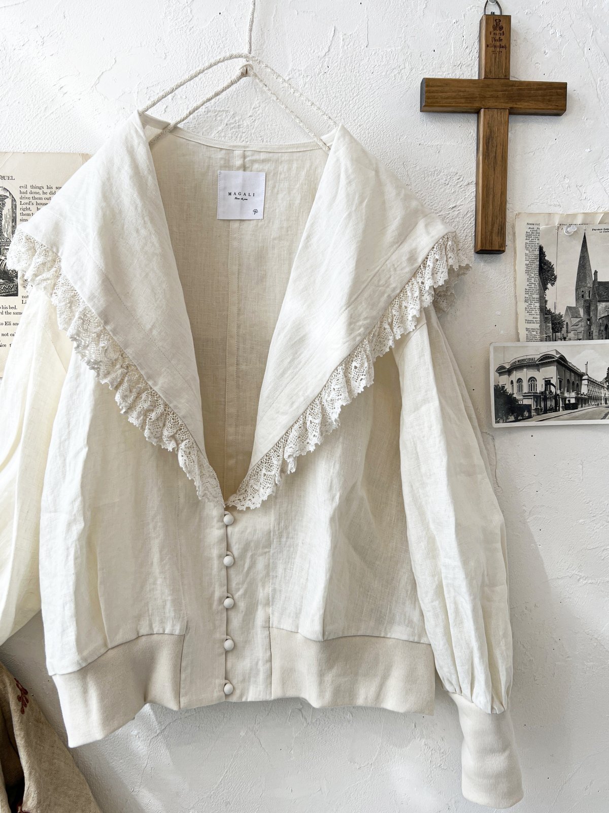MAGALI /コルトレイクリネン レース襟カーディガン・アイボリー [MGL260201]