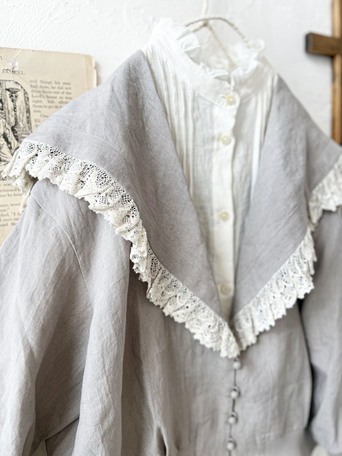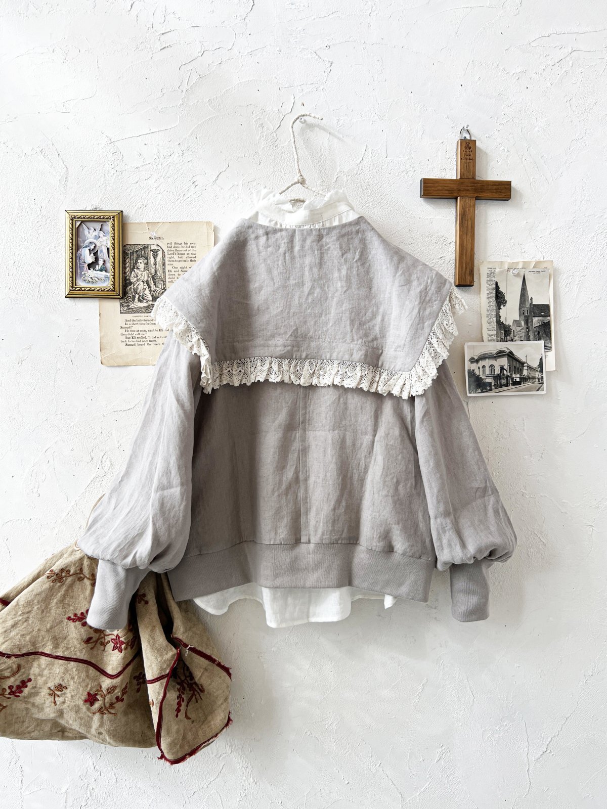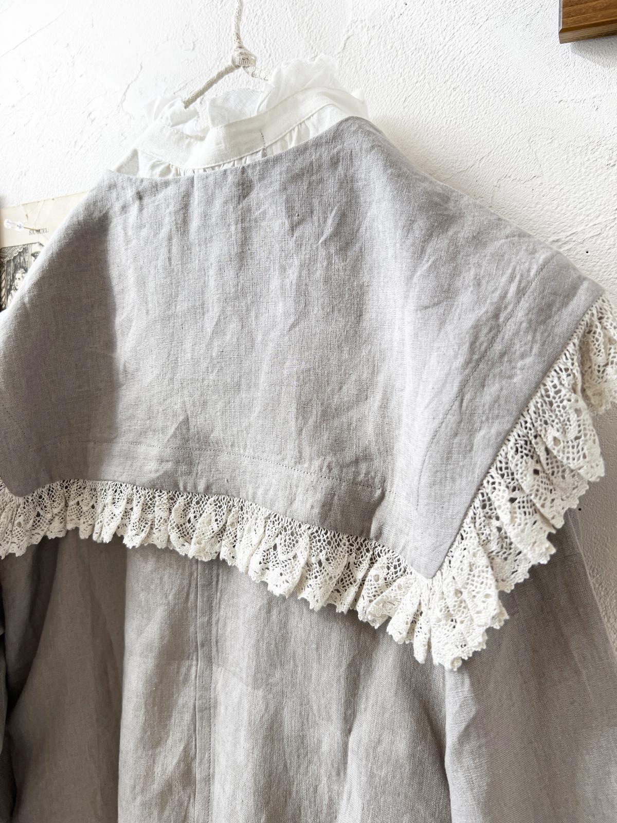 MAGALI /コルトレイクリネン レース襟カーディガン・グレー [MGL260202]