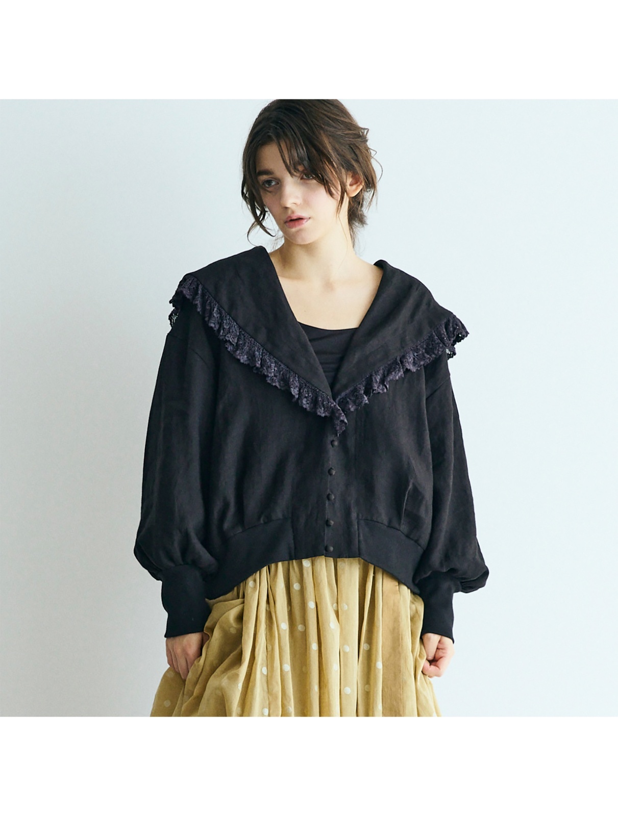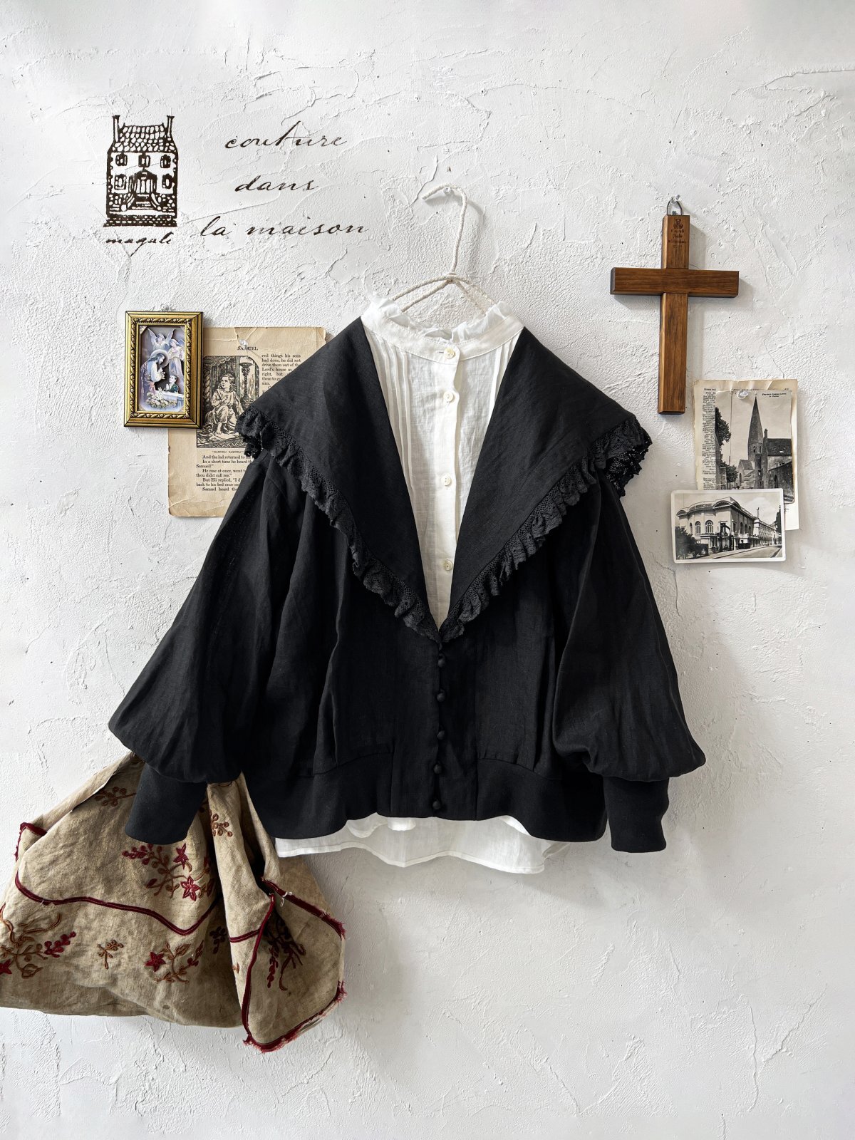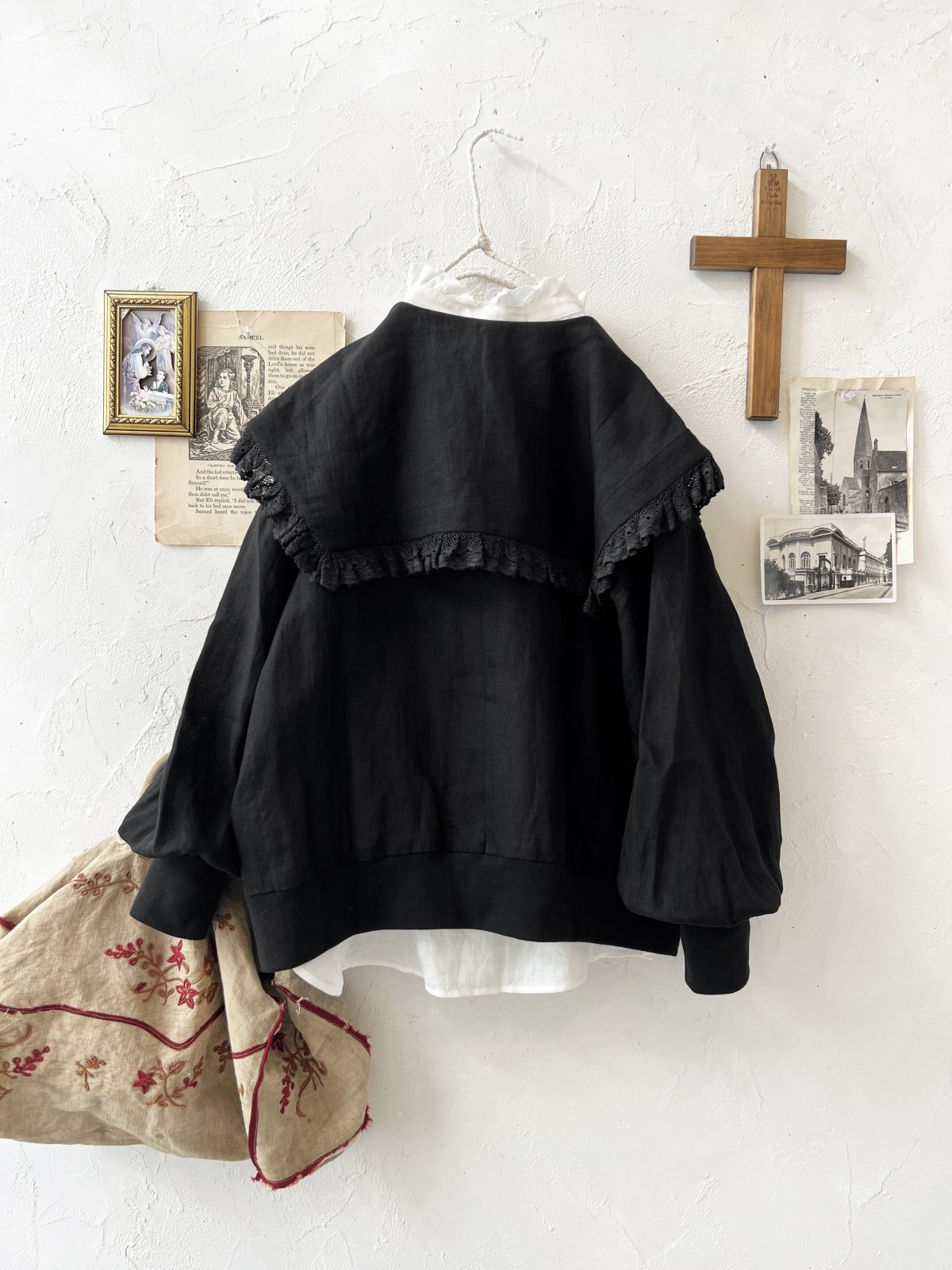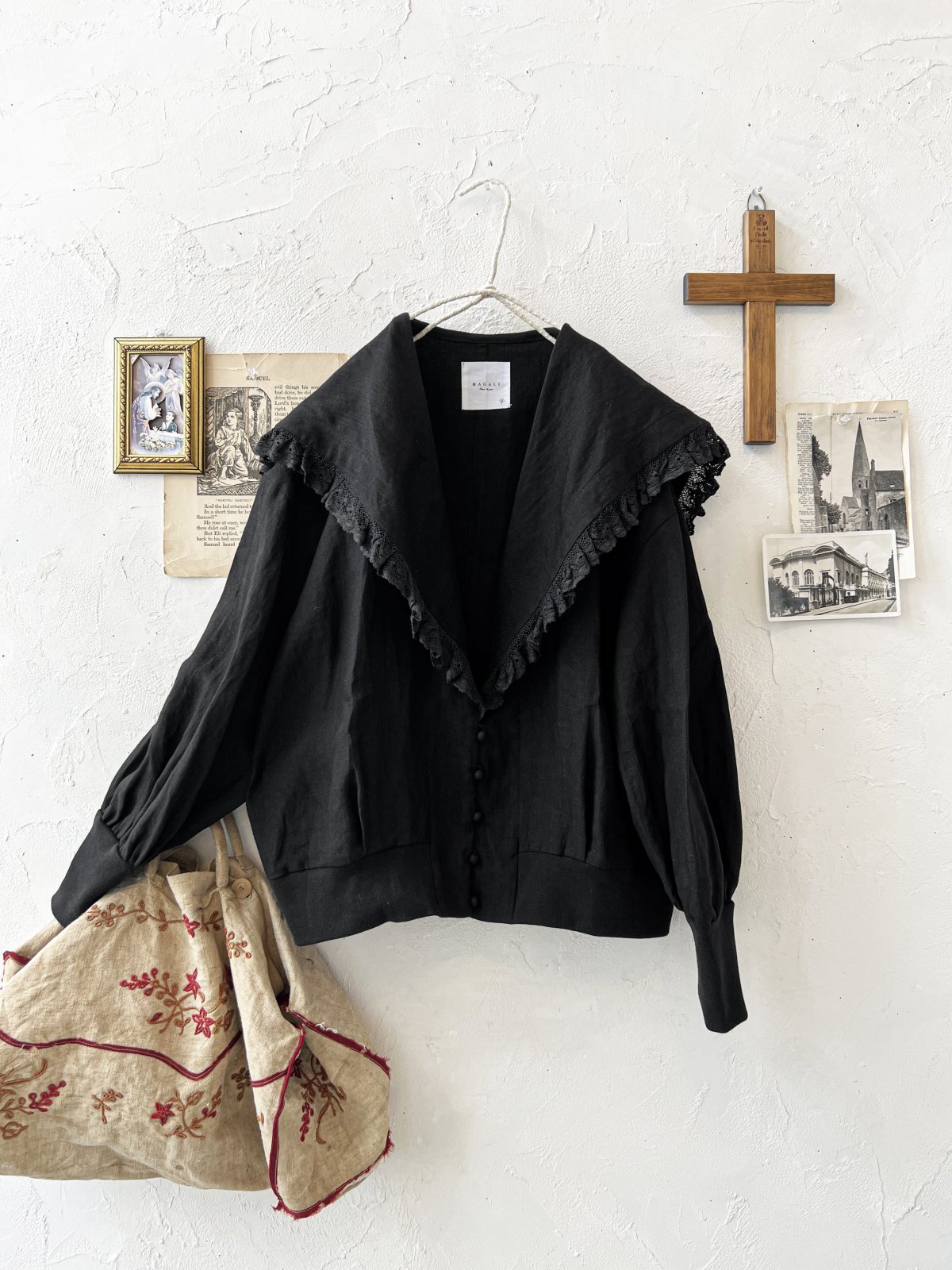 MAGALI /コルトレイクリネン レース襟カーディガン・ブラック [MGL260203]