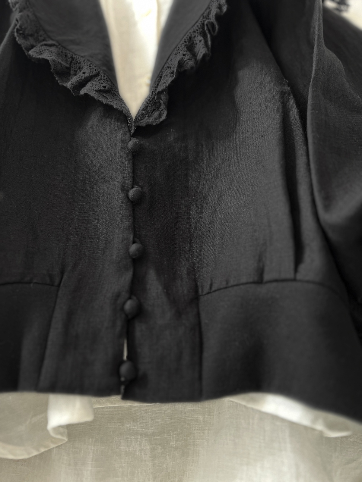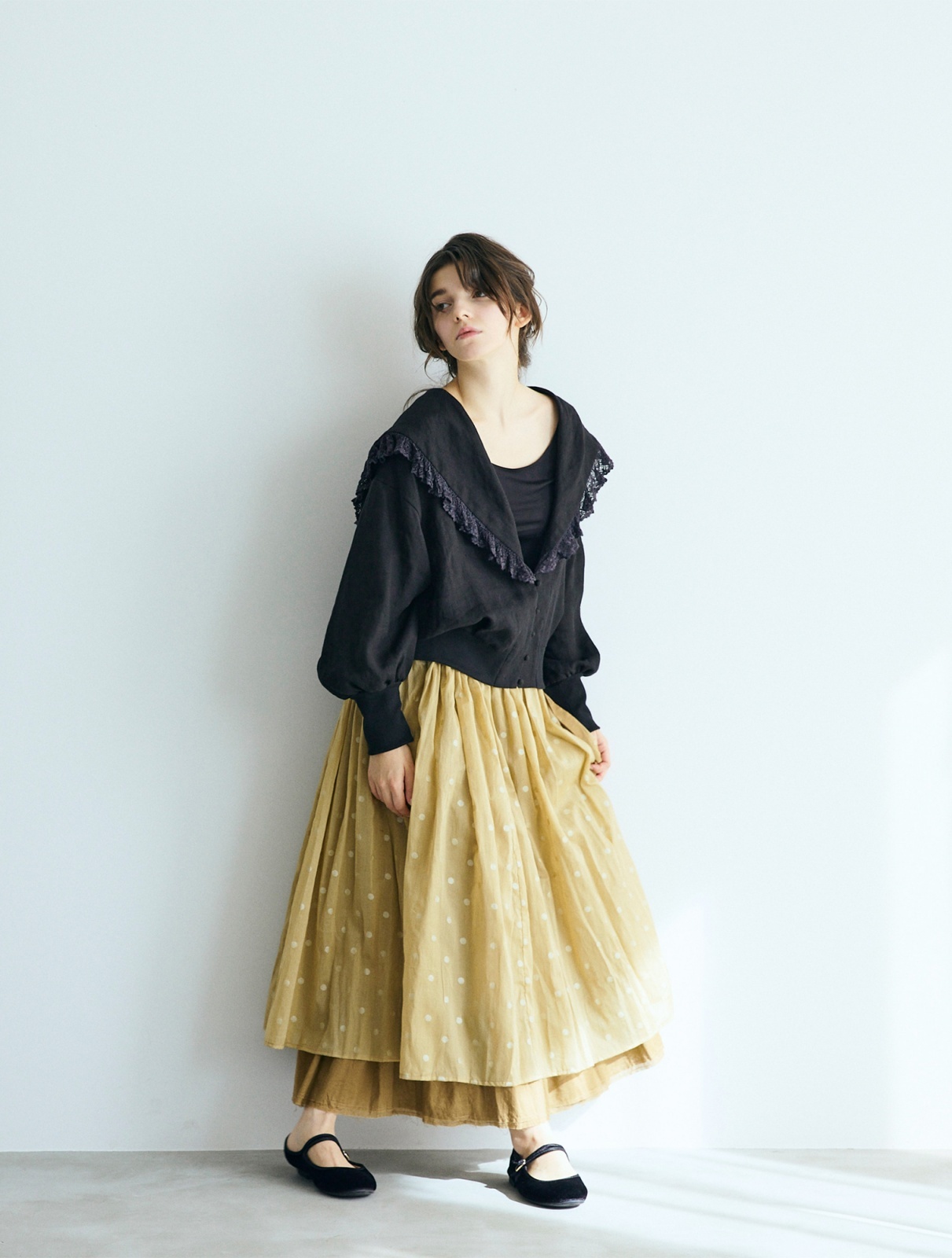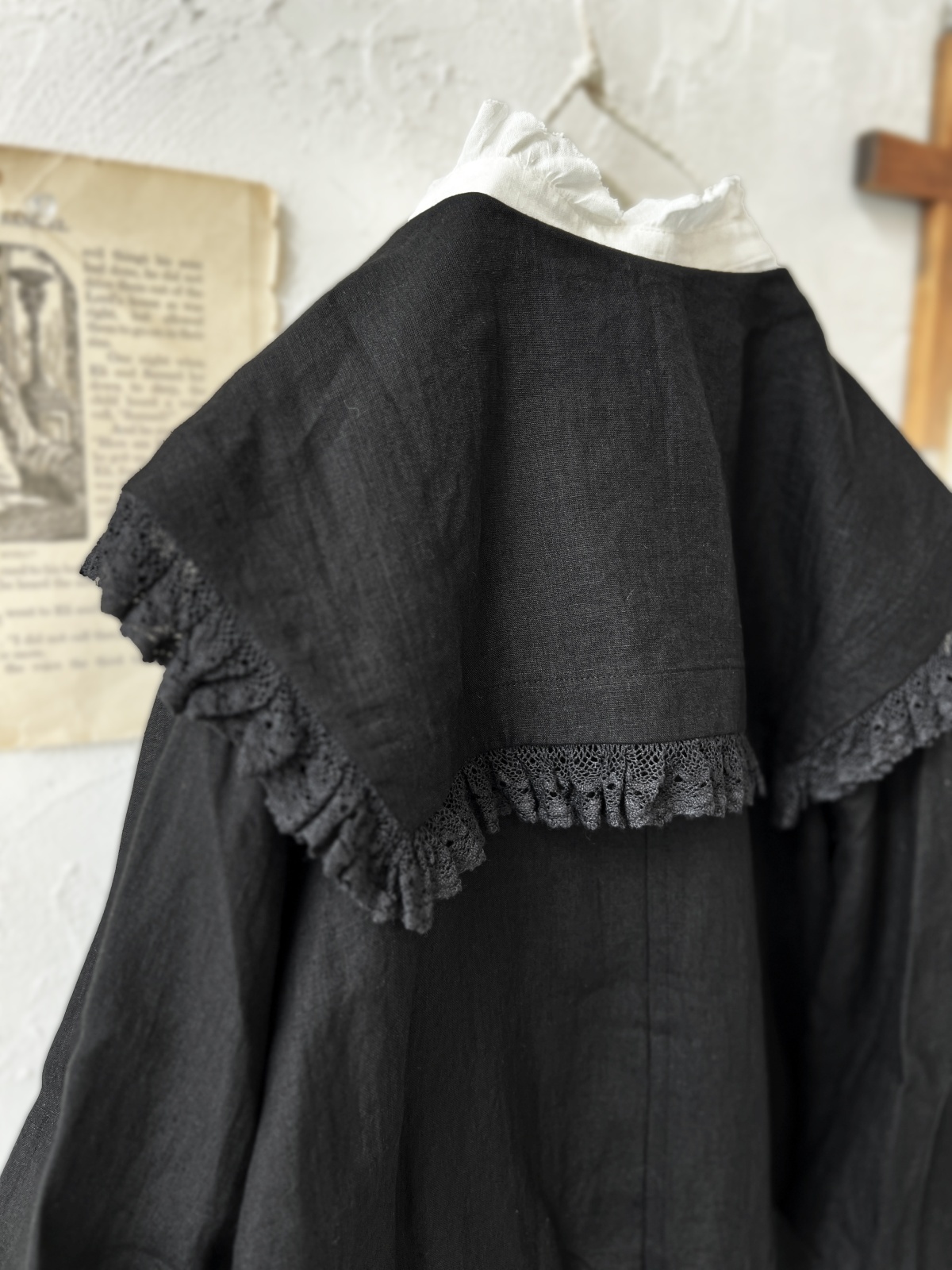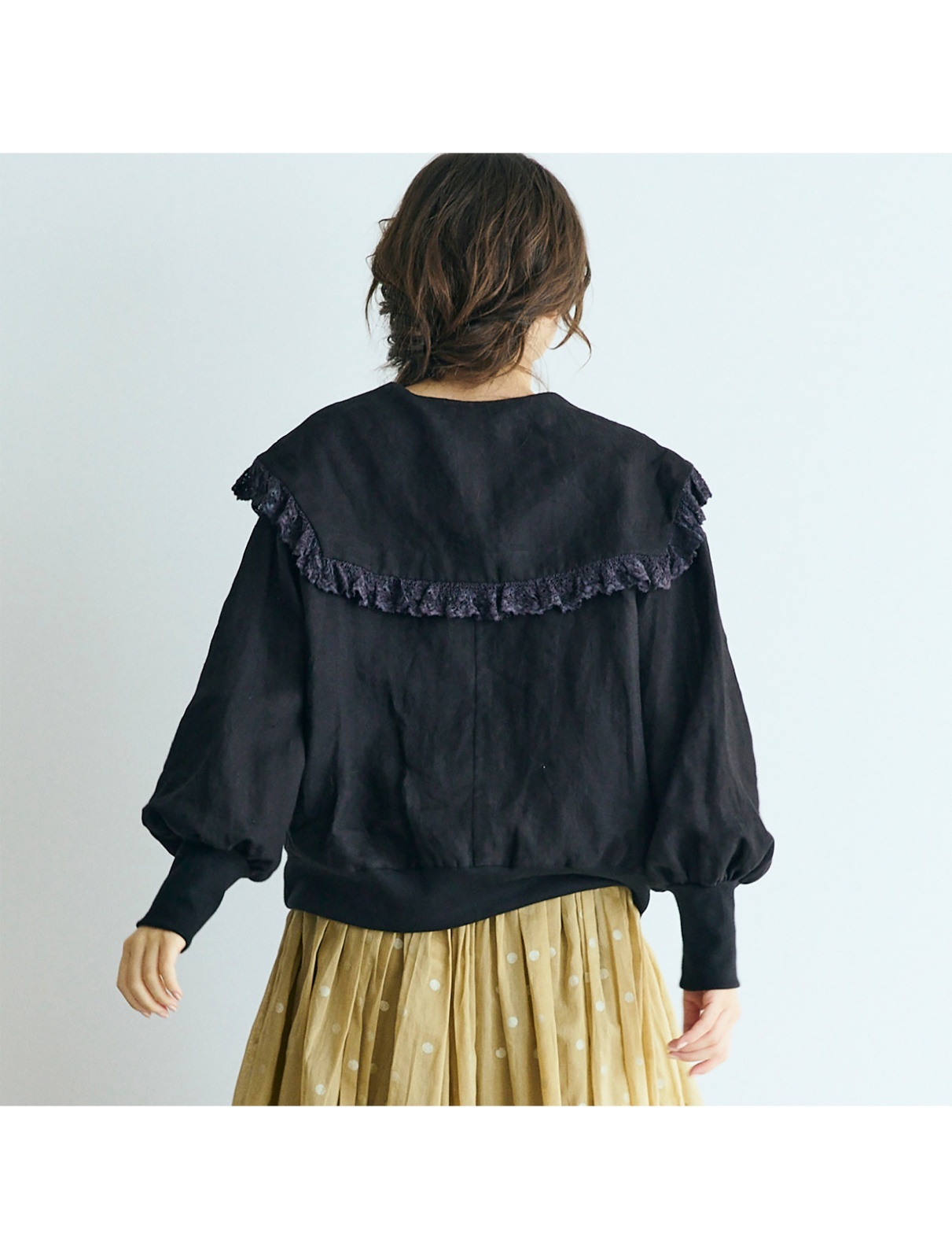 MAGALI /コルトレイクリネン レース襟カーディガン・ブラック [MGL260203]