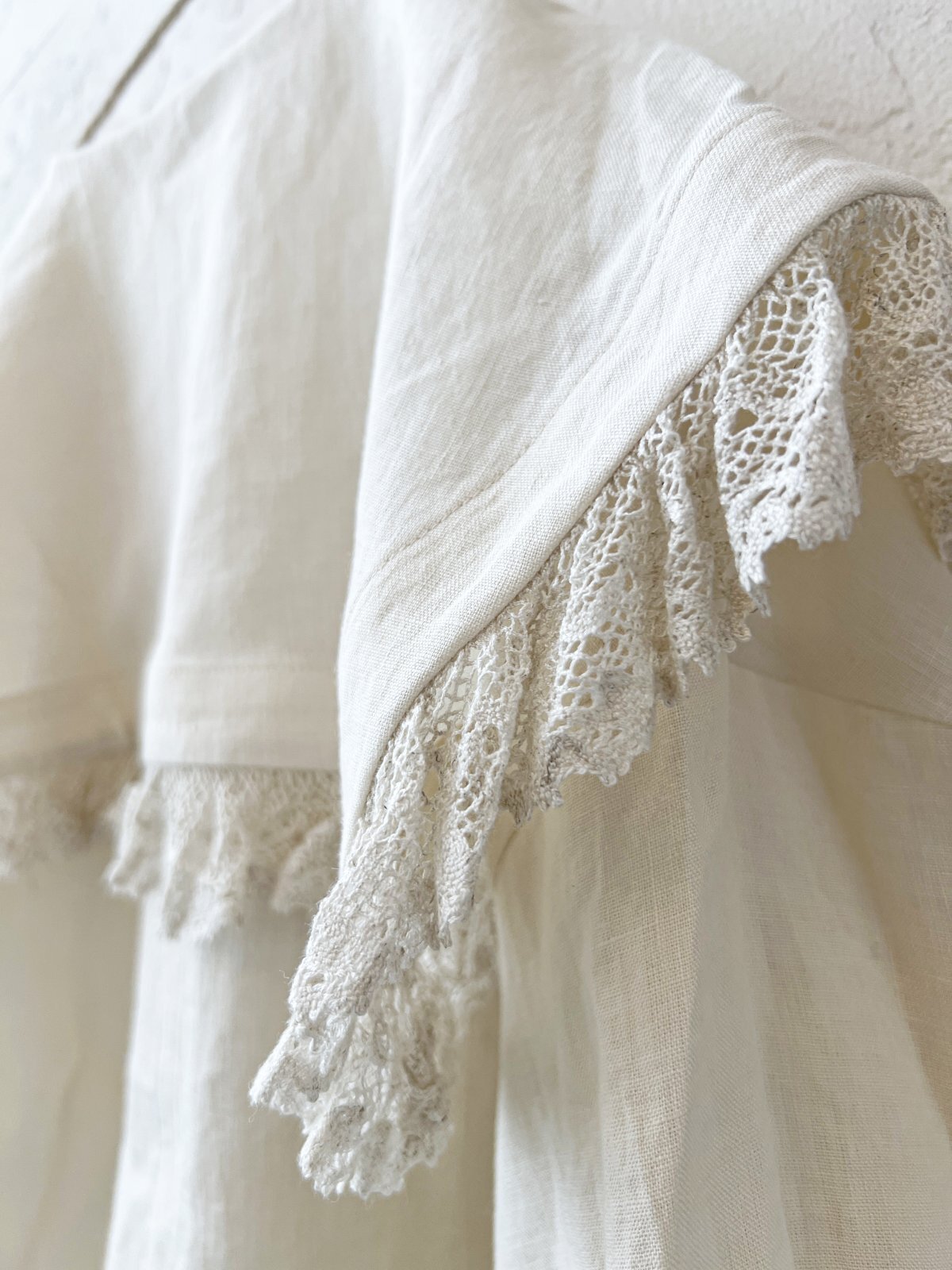 ふんわりと大きなセーラー衿と、繊細なレースがふちどる
