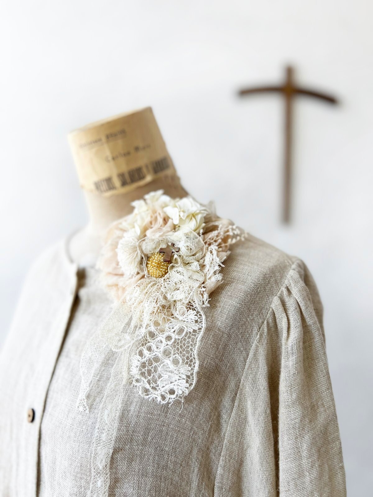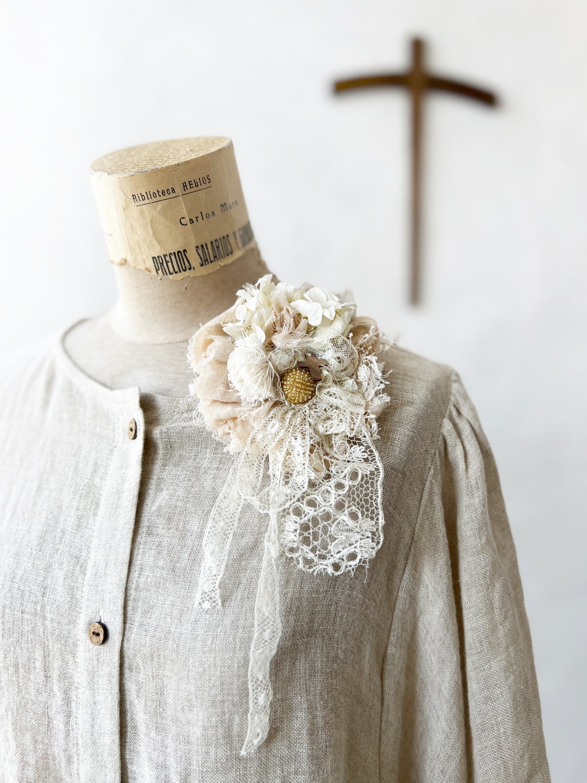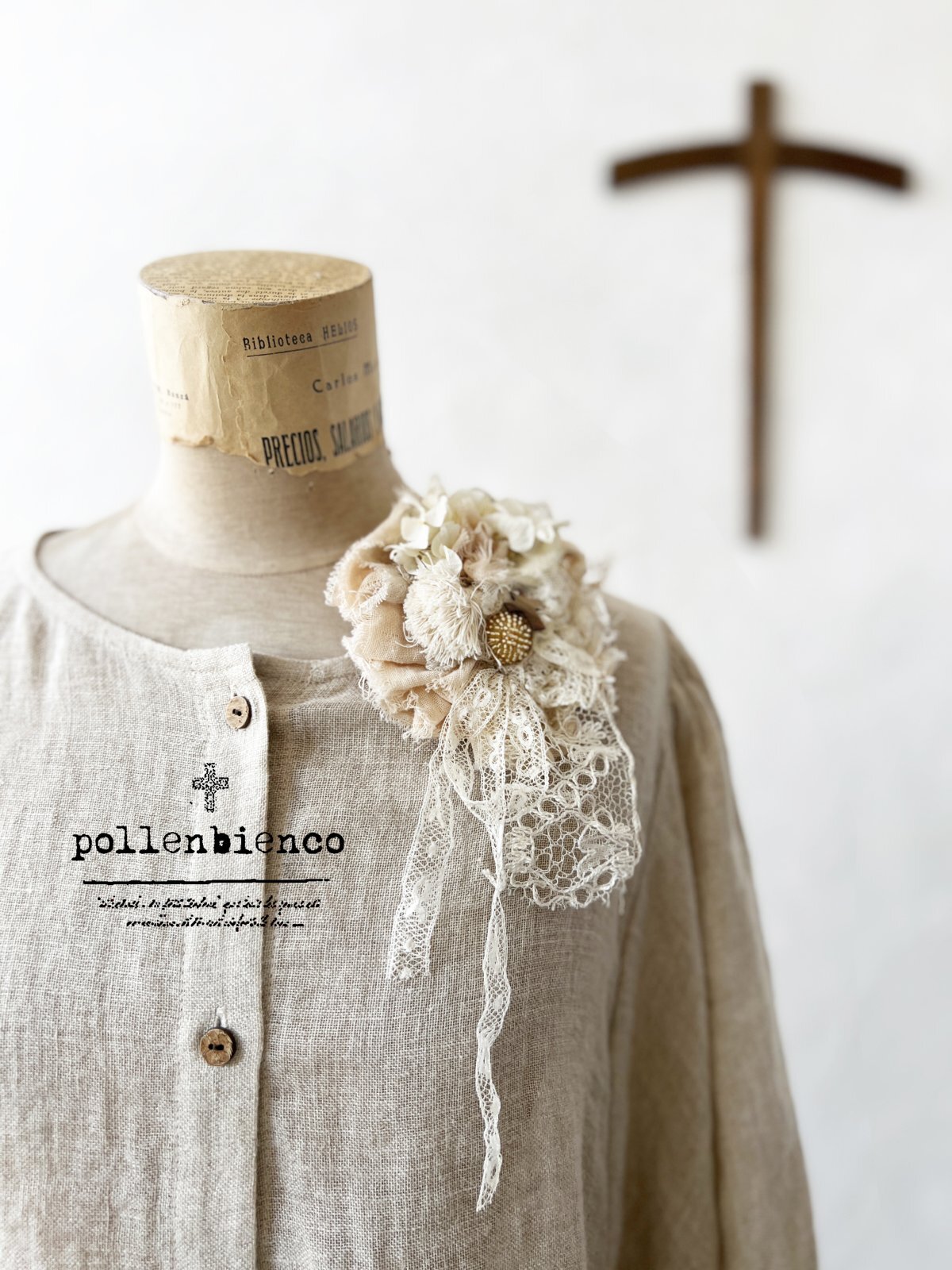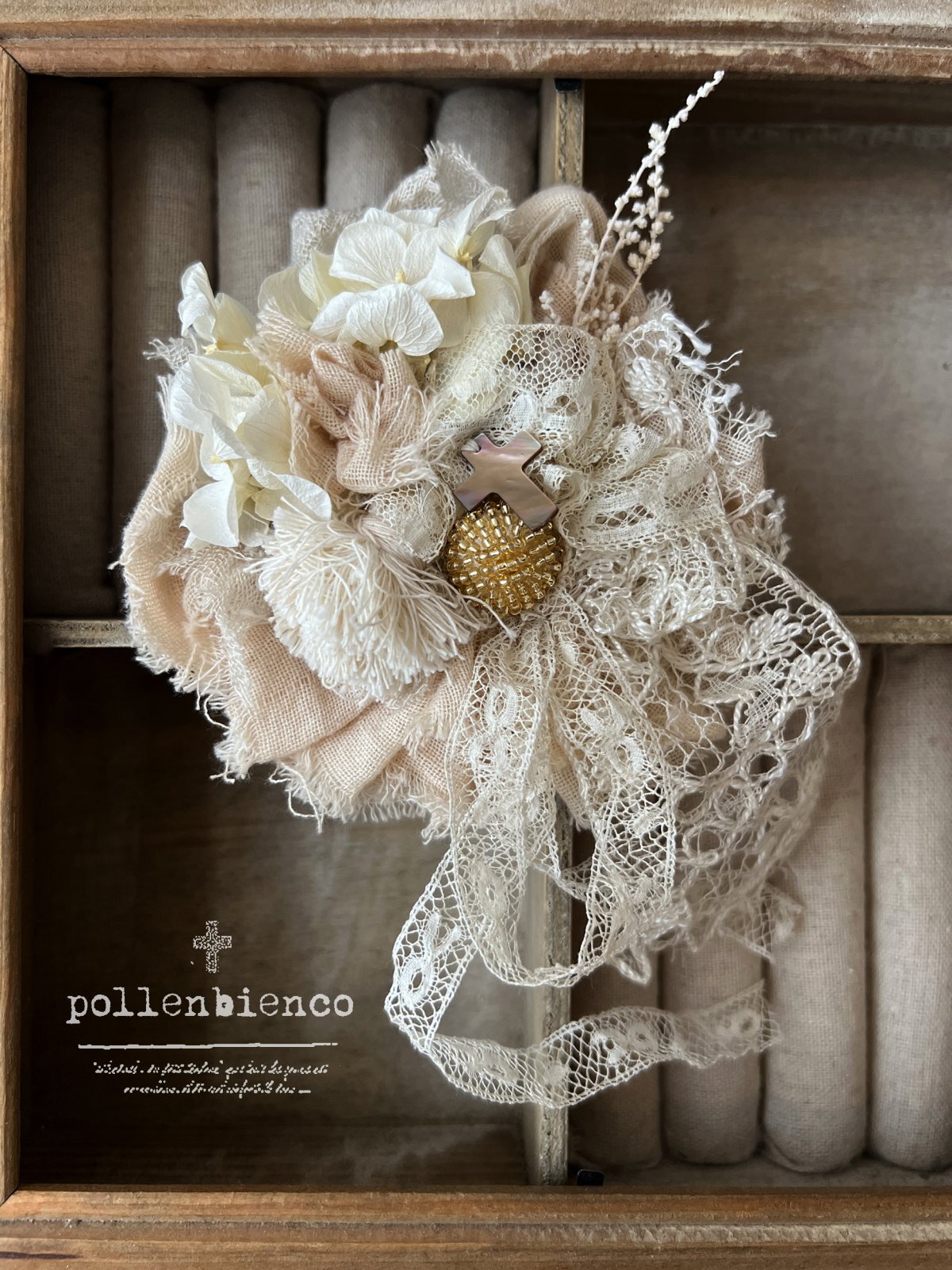pollenbienco/アンティークレースとプリザーブドフラワーのコサージュ・C [POL260201]