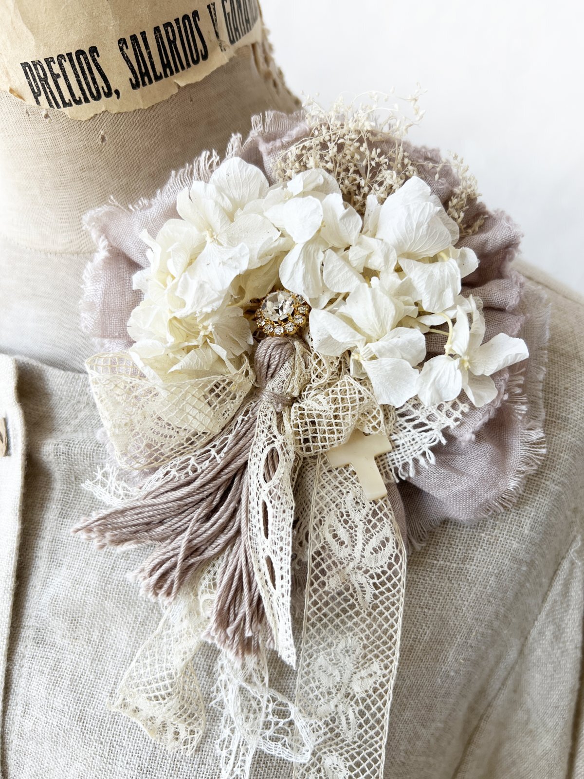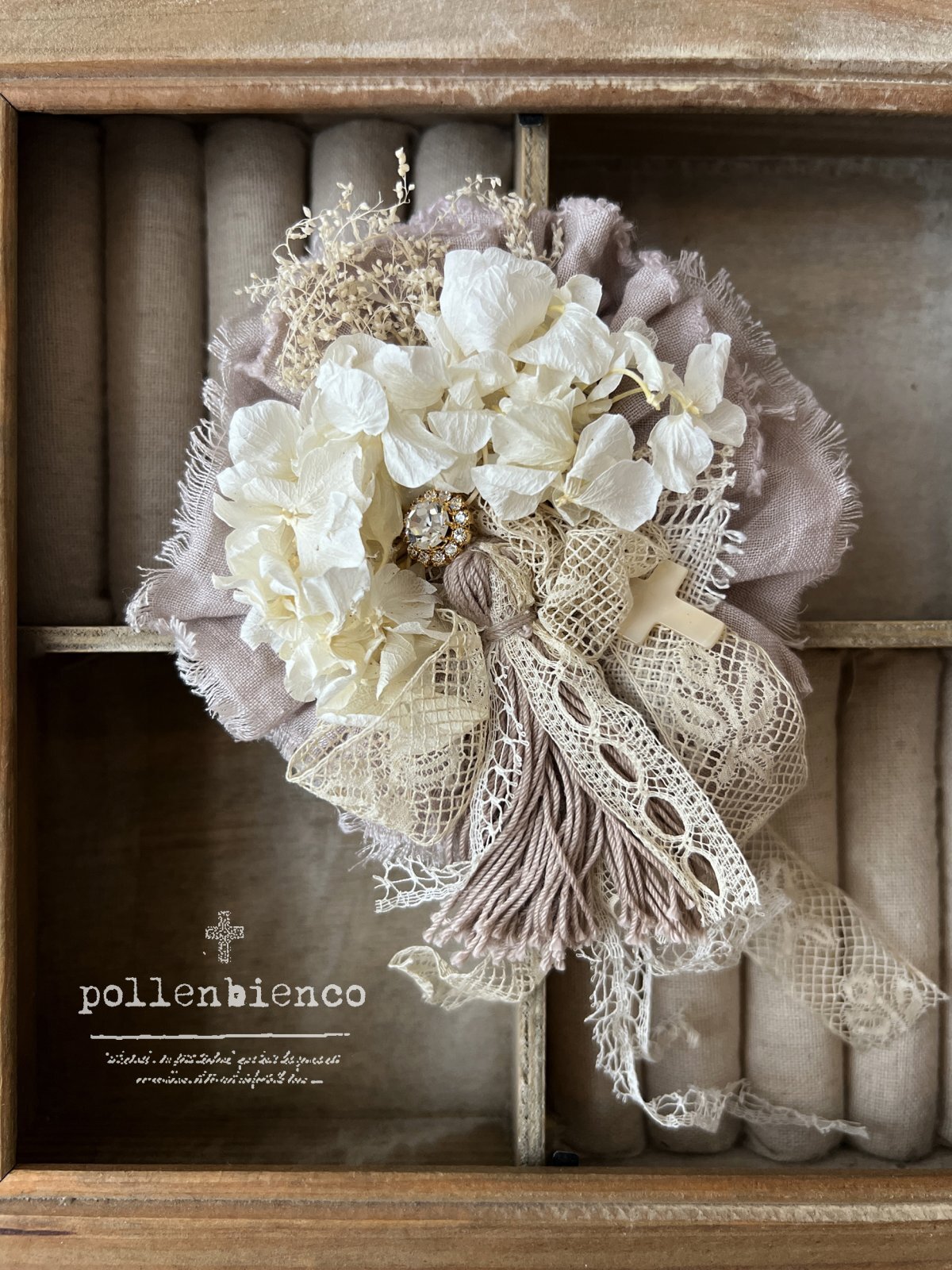 pollenbienco/アンティークレースとプリザーブドフラワーのコサージュ・E [POL260201]