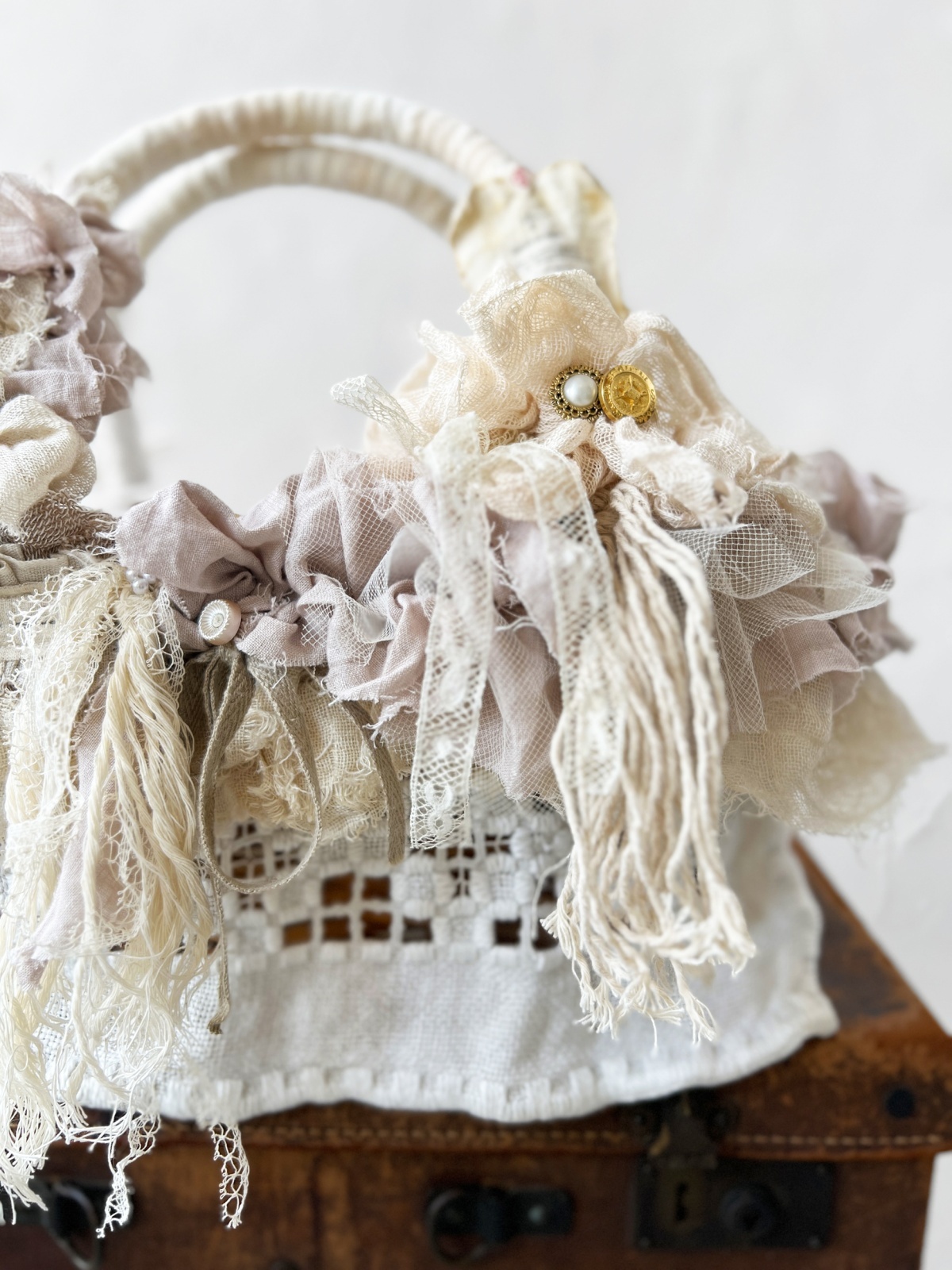 pollenbienco/アンティークレースのバスケット・A [POL260203]