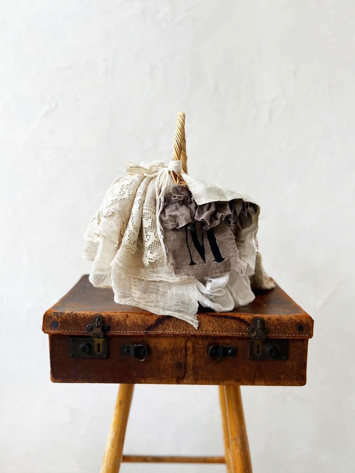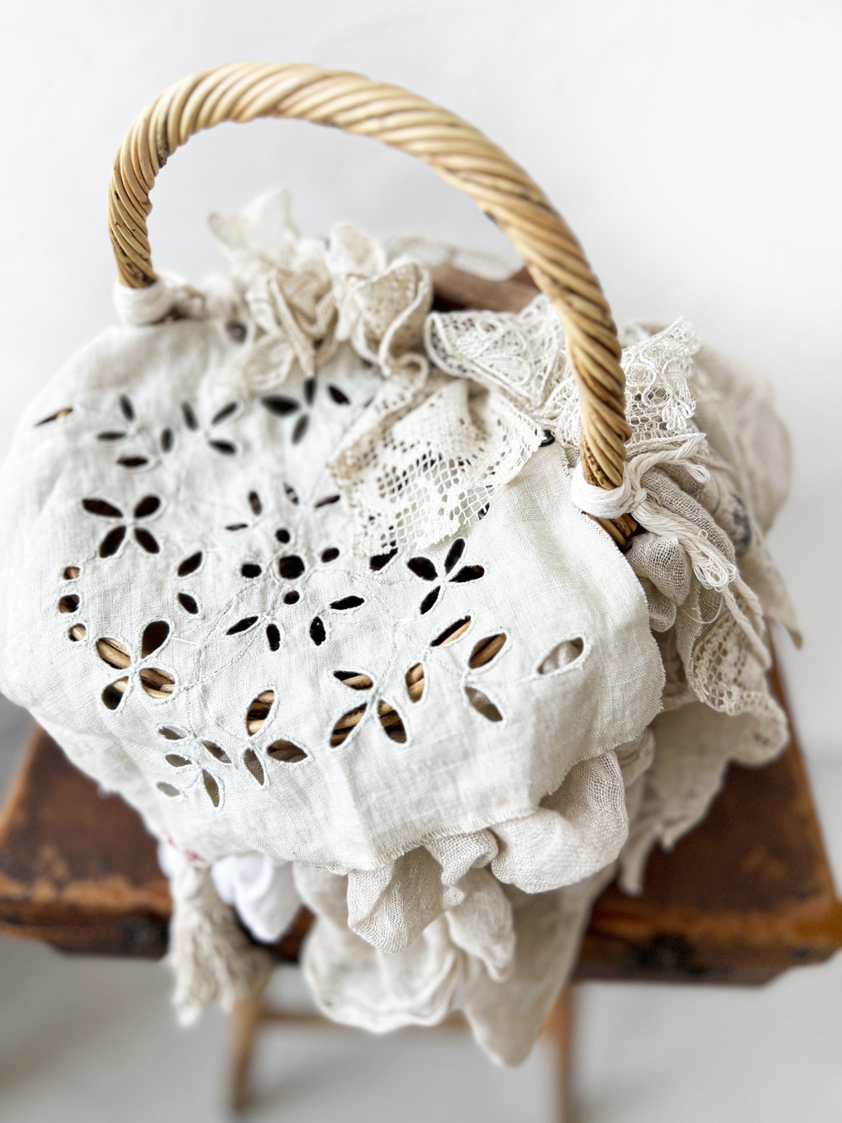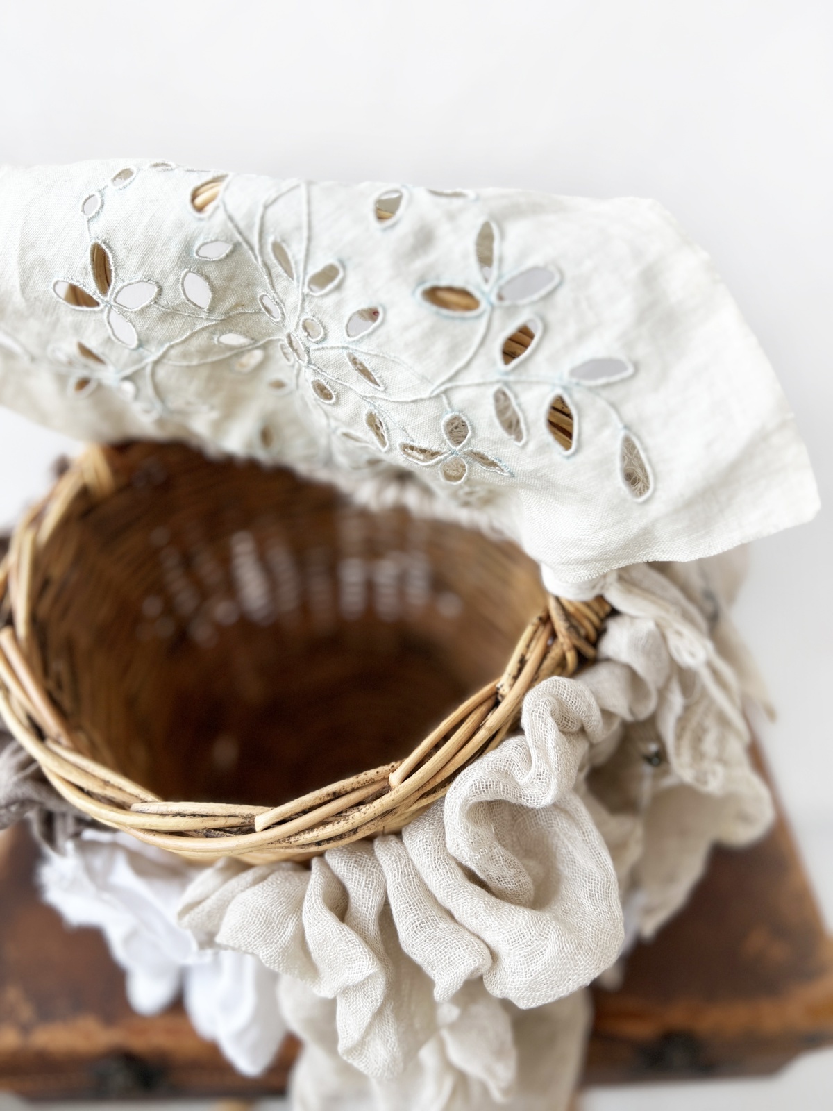 アンティークリネンクロスをカバーのようにあしらっています。