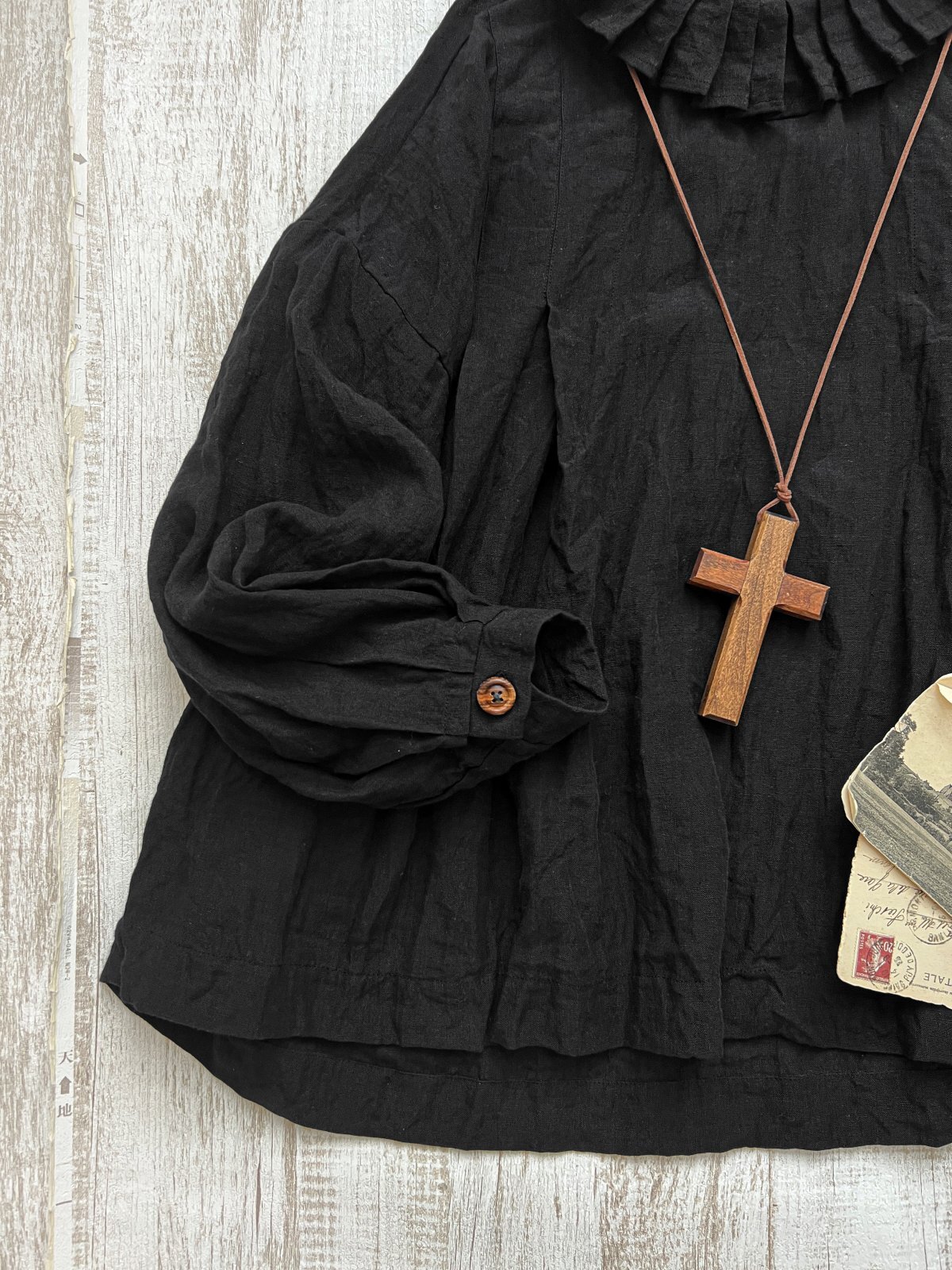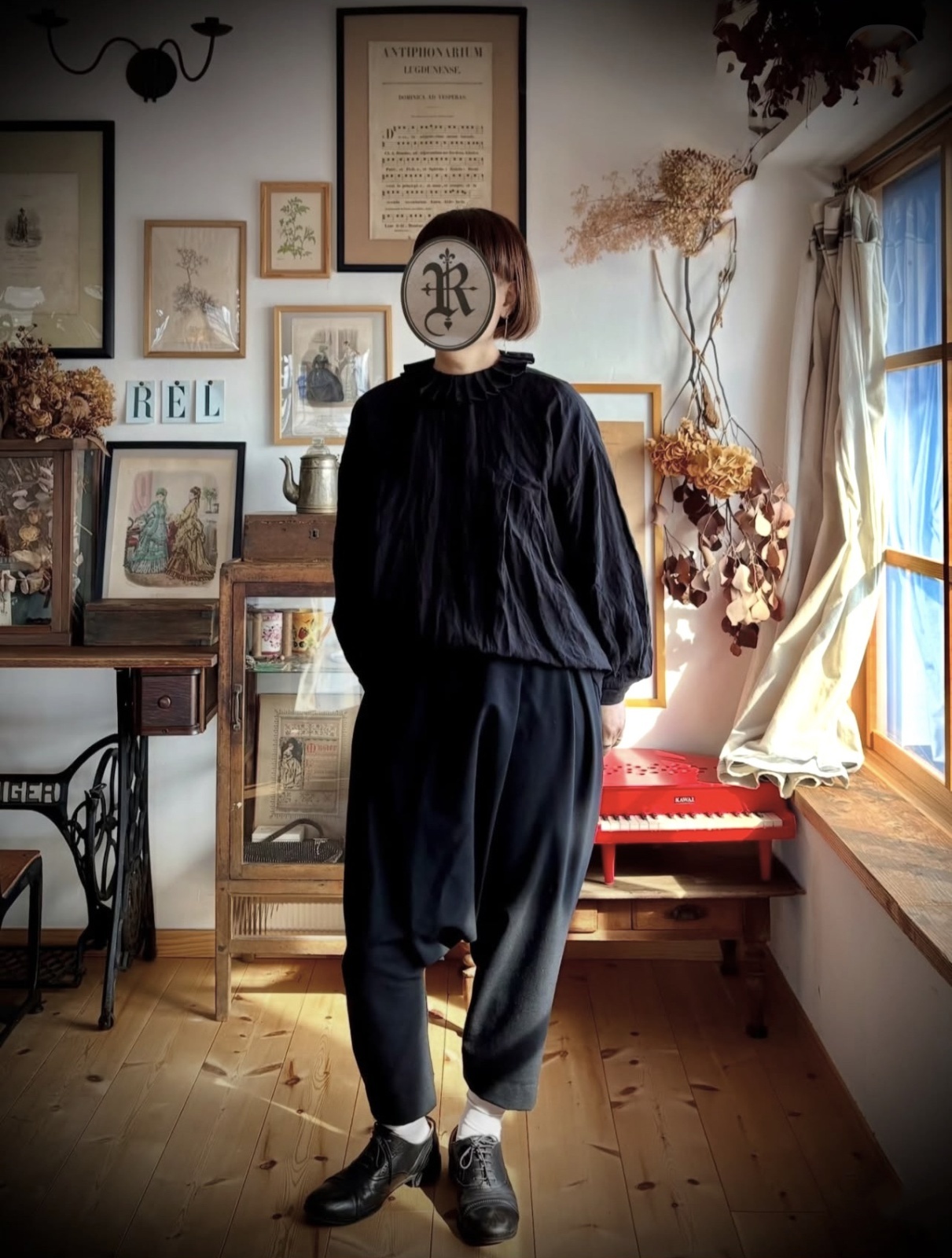 Reliure/Tucked ruffle collar blouse・black [MDS260213]