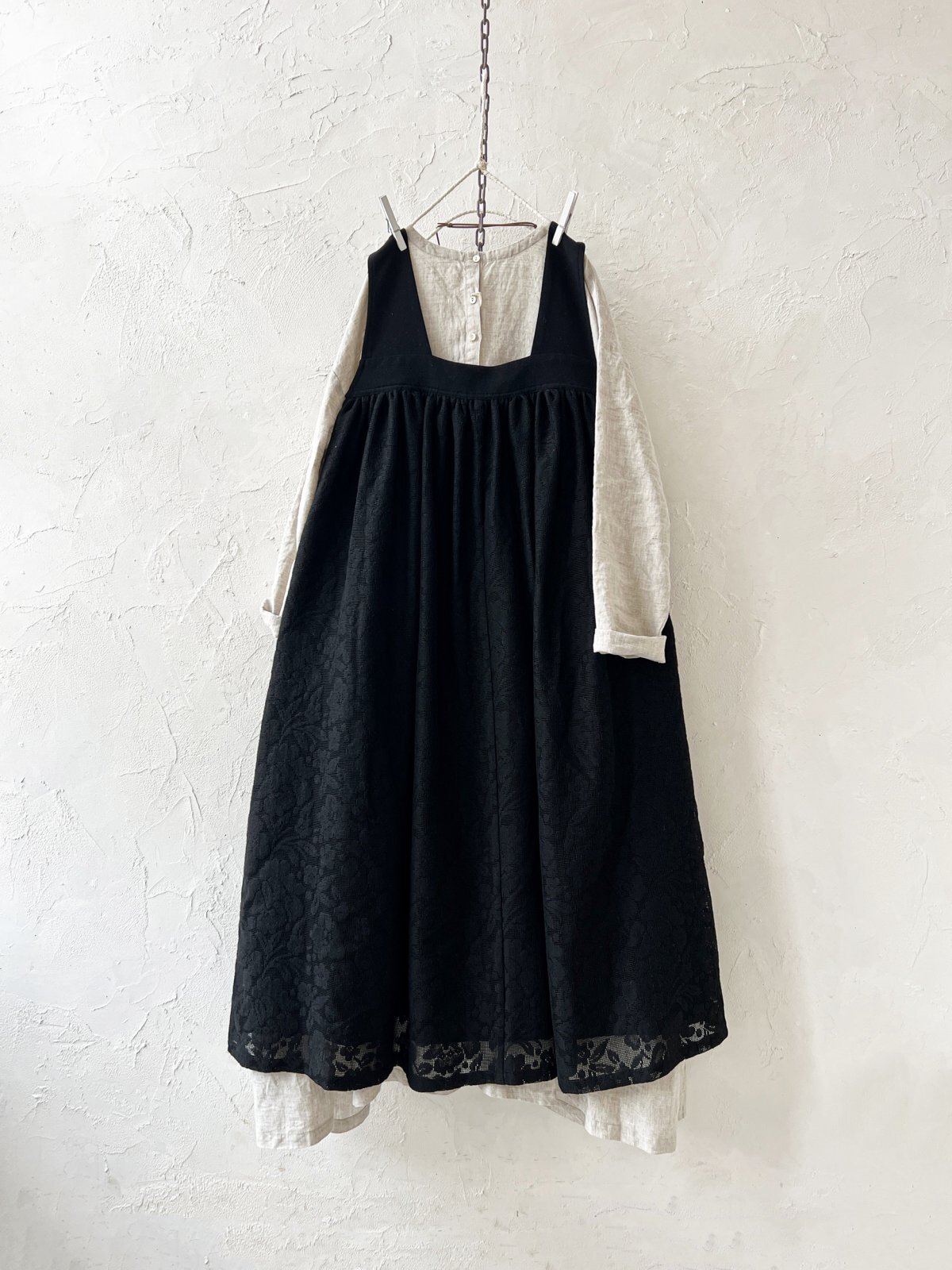 sorte cuff/レースギャザージャンパースカート・黒 [8MA260209]