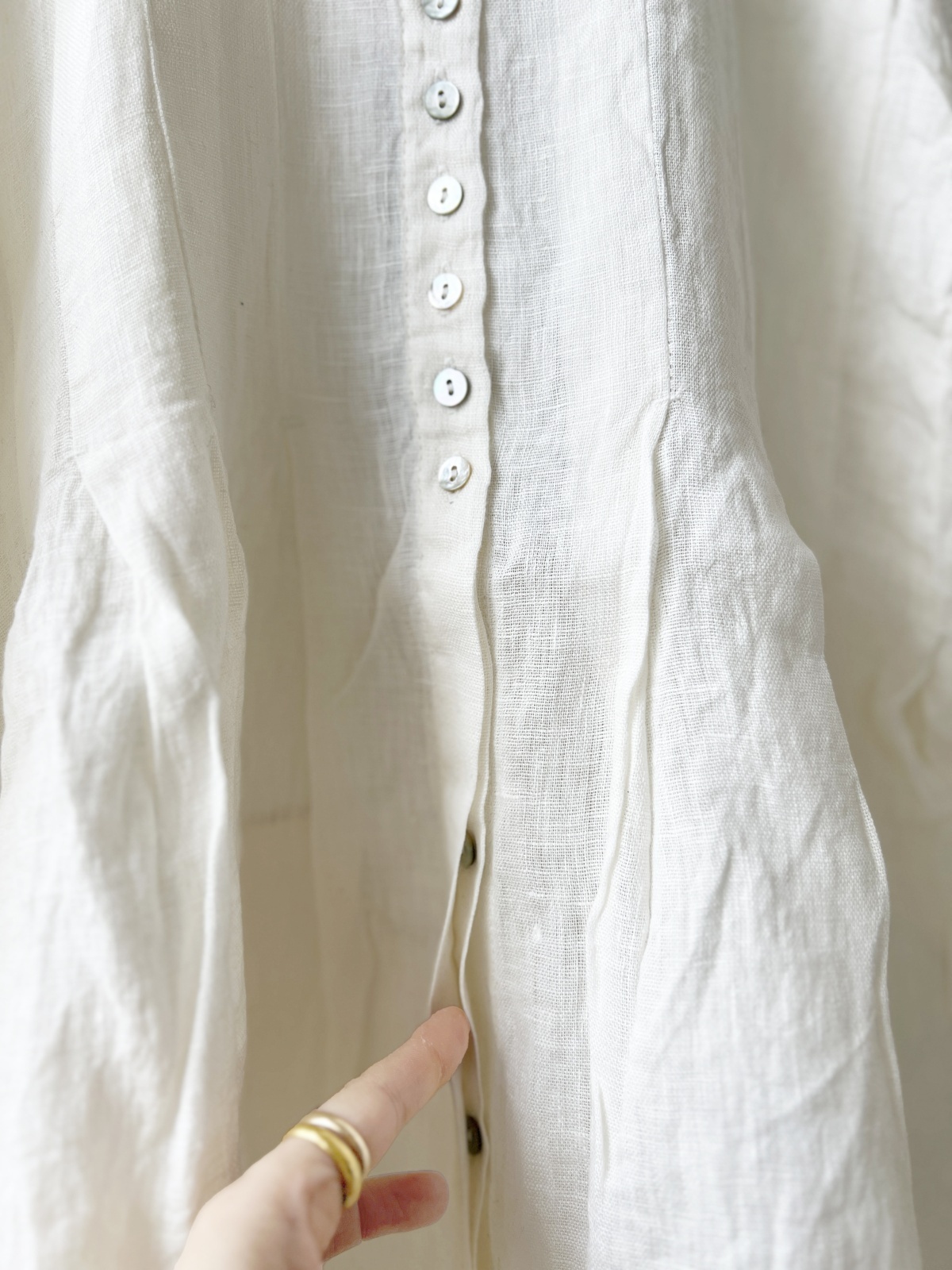 前開きボタンは胸下から隠したデザインです。