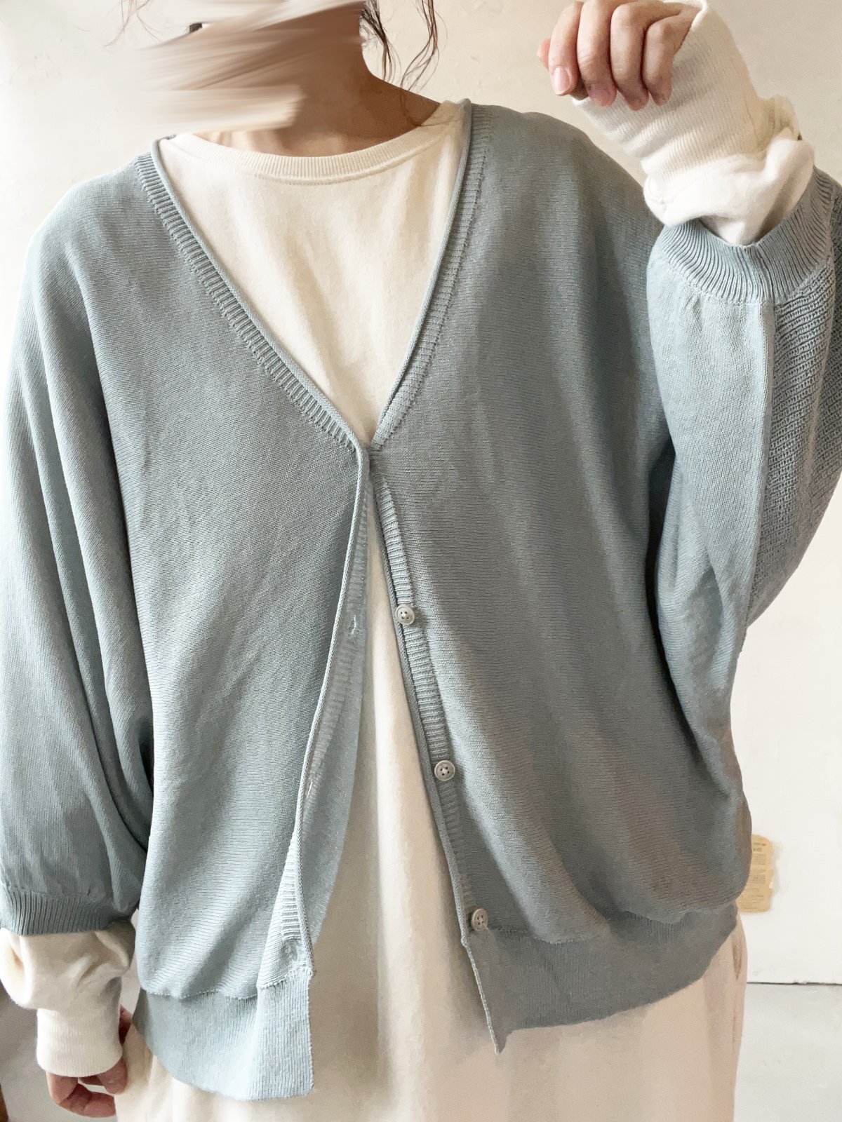 ふわっと軽く羽織れる、ドルマン袖の薄手ニットカーディガン。