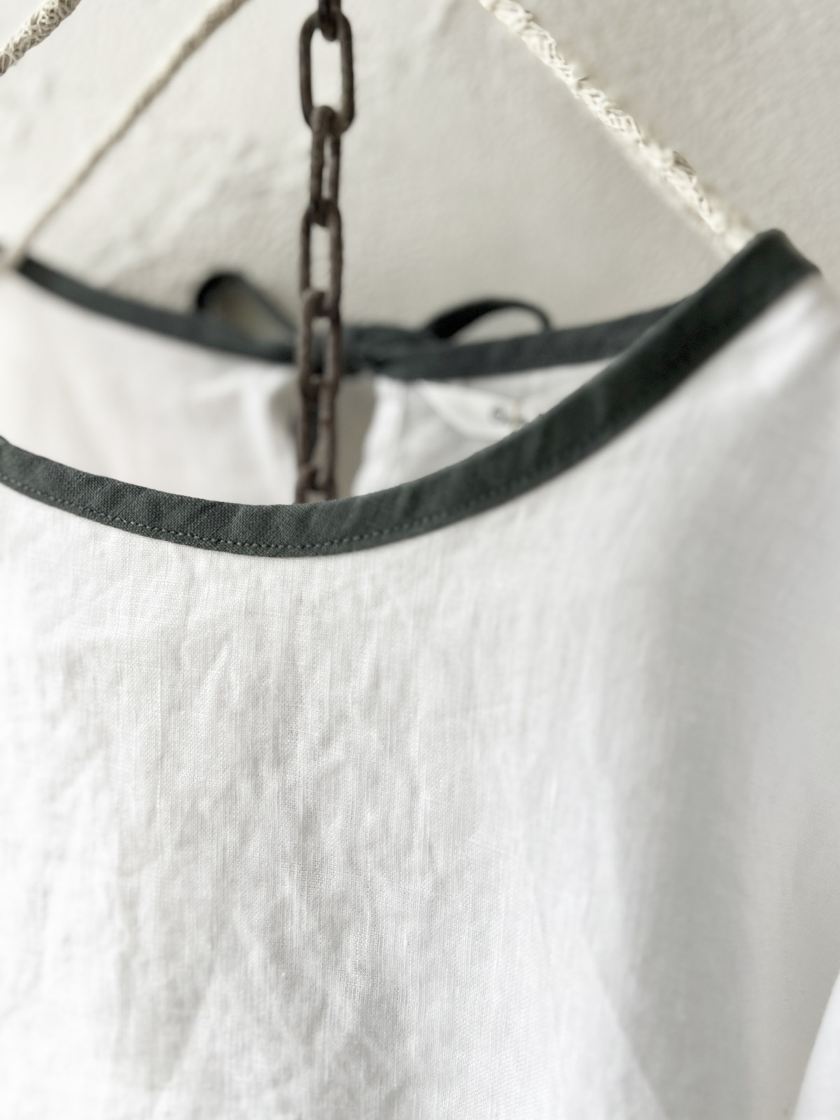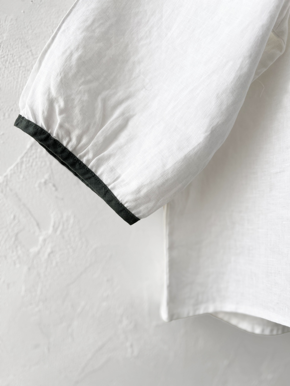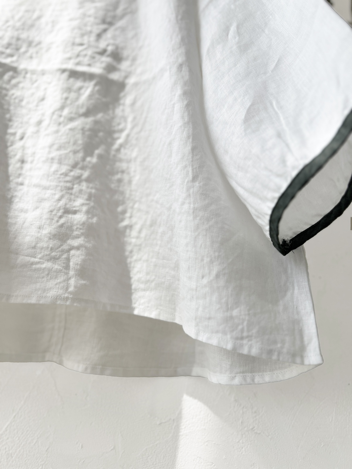 洗いざらしのようなリネンの風合いに、配色のパイピング