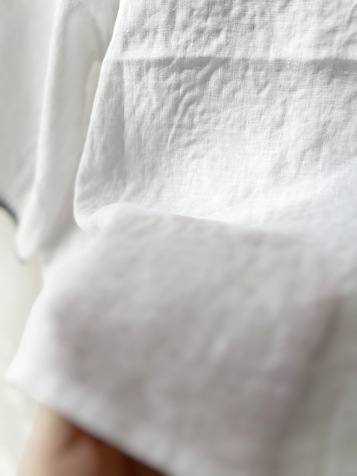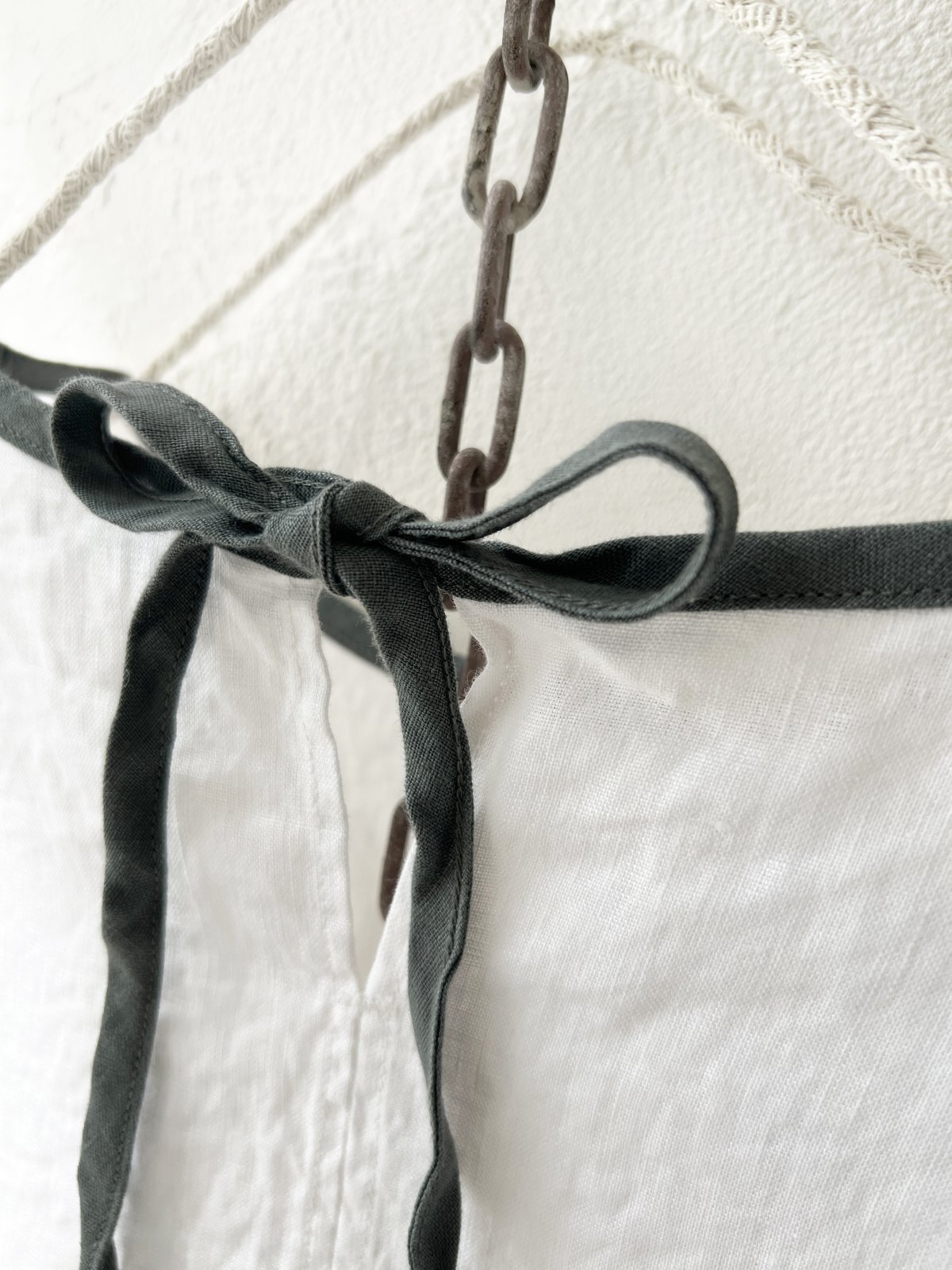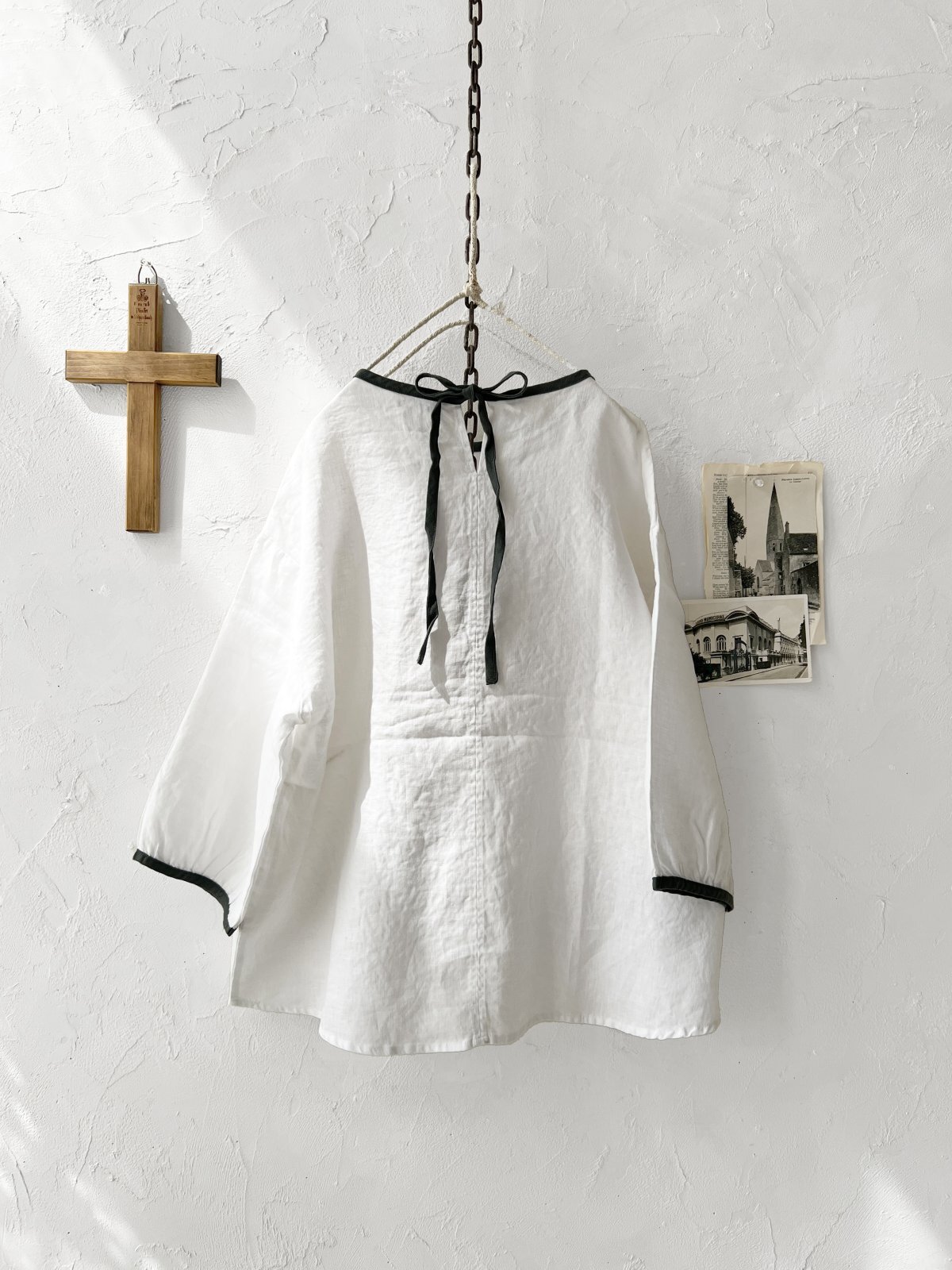洗いざらしのようなリネンの風合いに、配色のパイピング