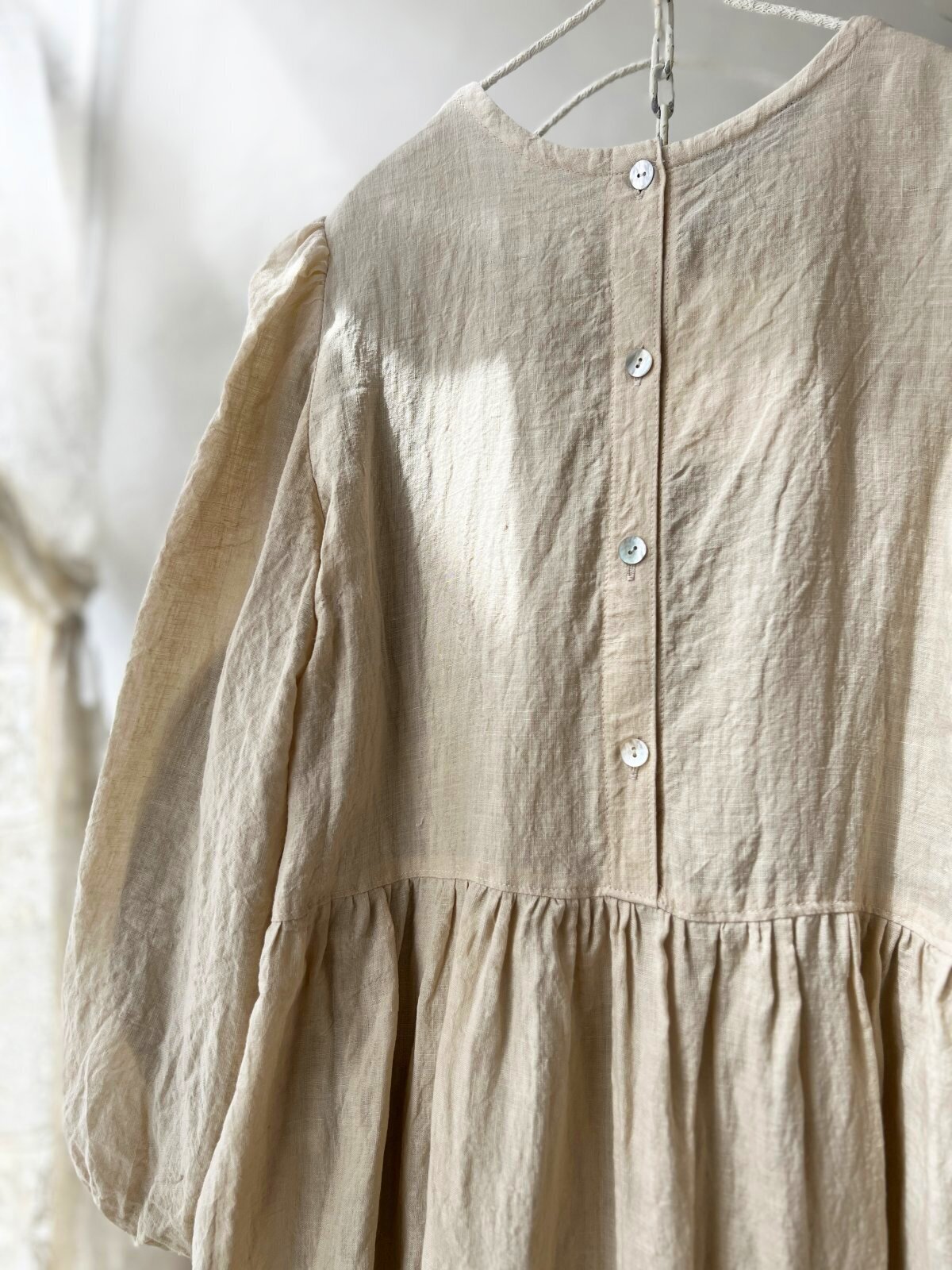 背中はボタンで留めて、佇まいも懐かしく可愛らしく。