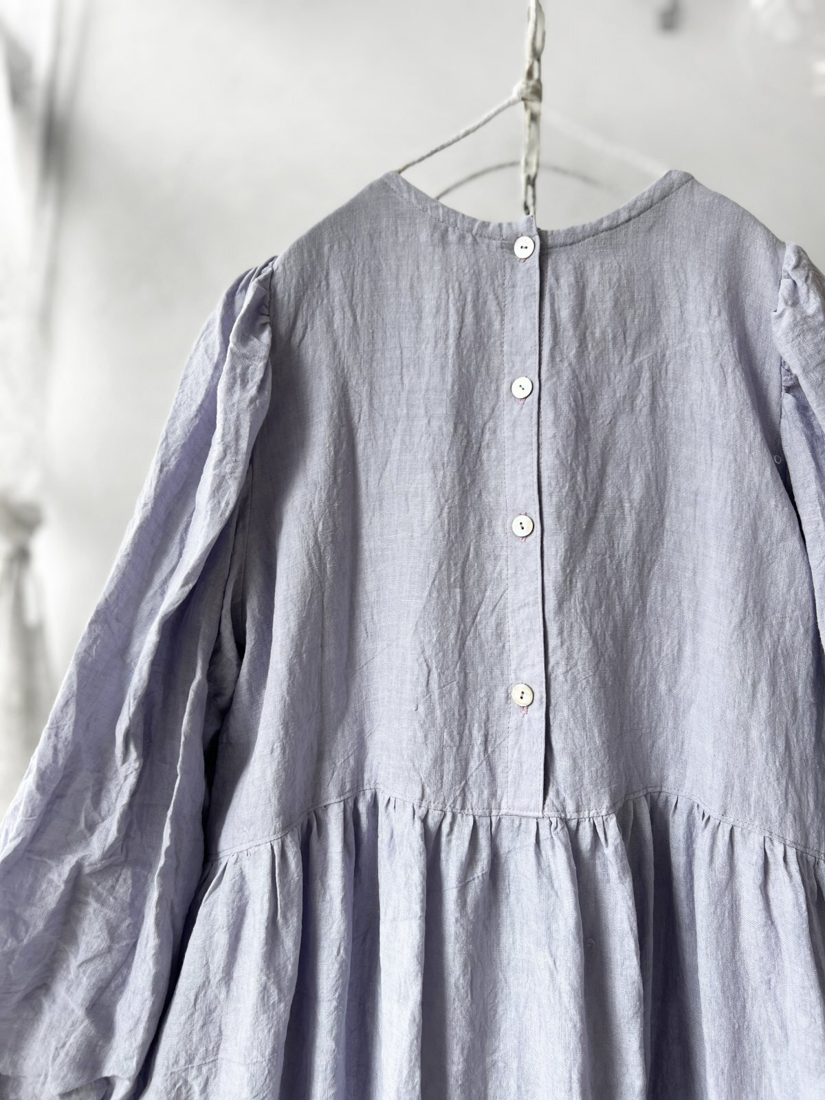 背中はボタンで留めて、佇まいも懐かしく可愛らしく。
