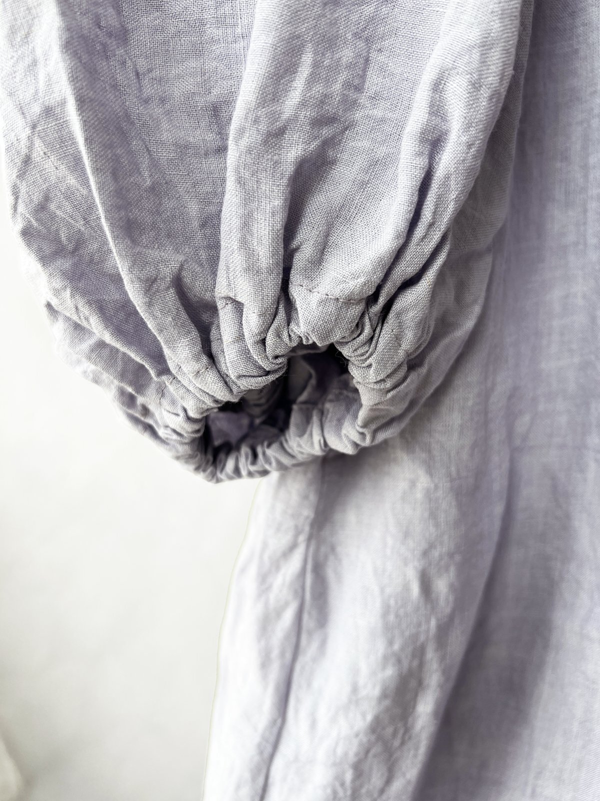 肩からのふっくらpuffで、ボリュームスリーブのワンピース。