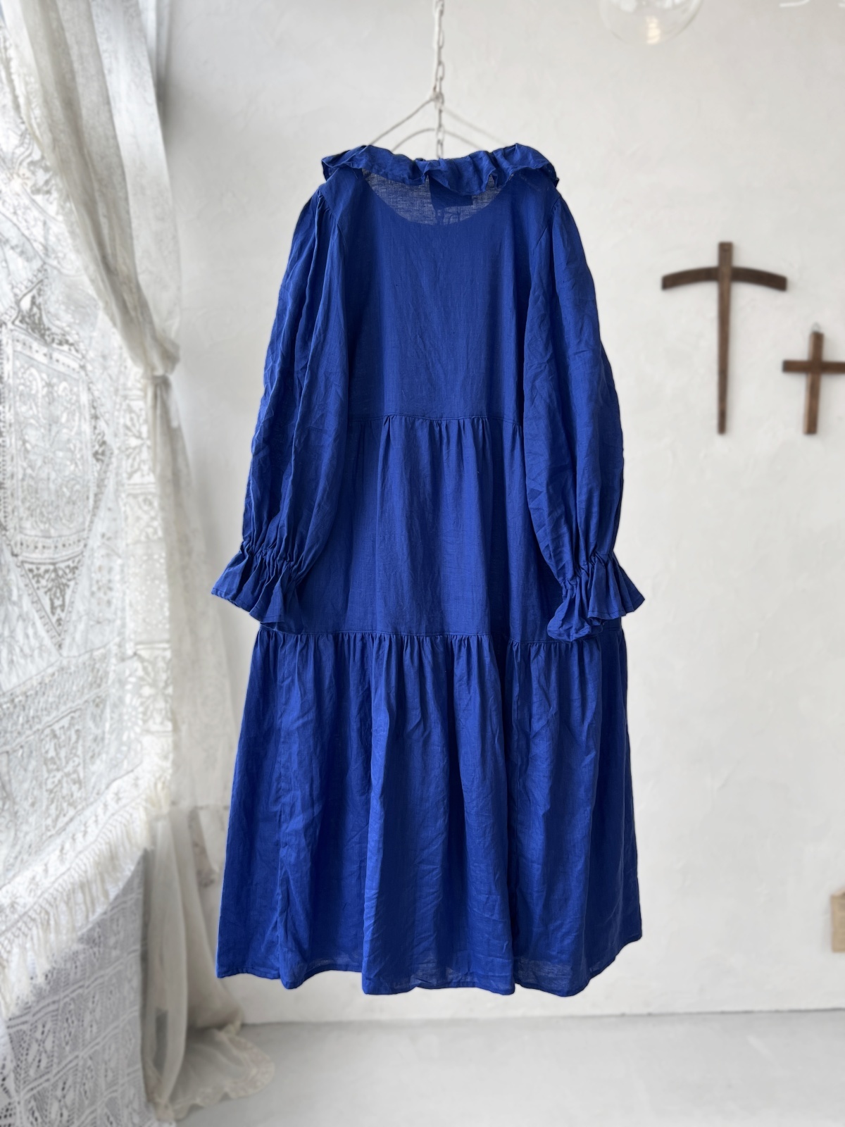 薄手のリネンで、ティアードギャザーが風になびく