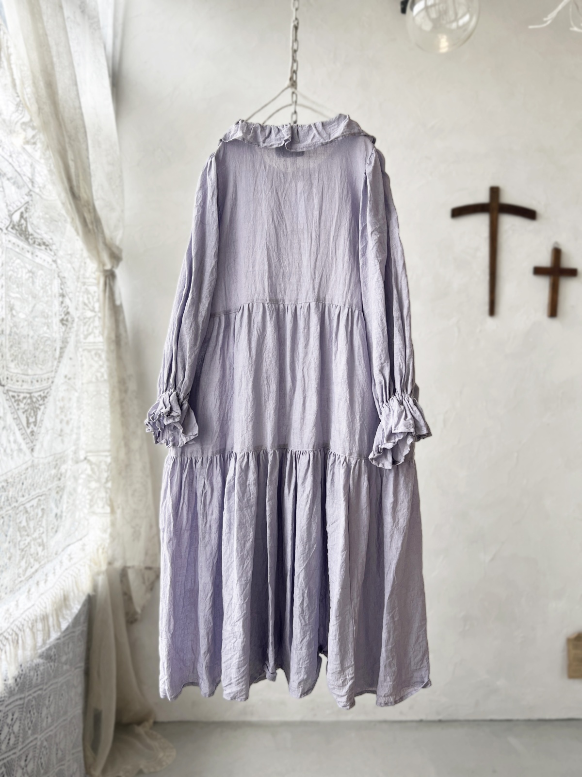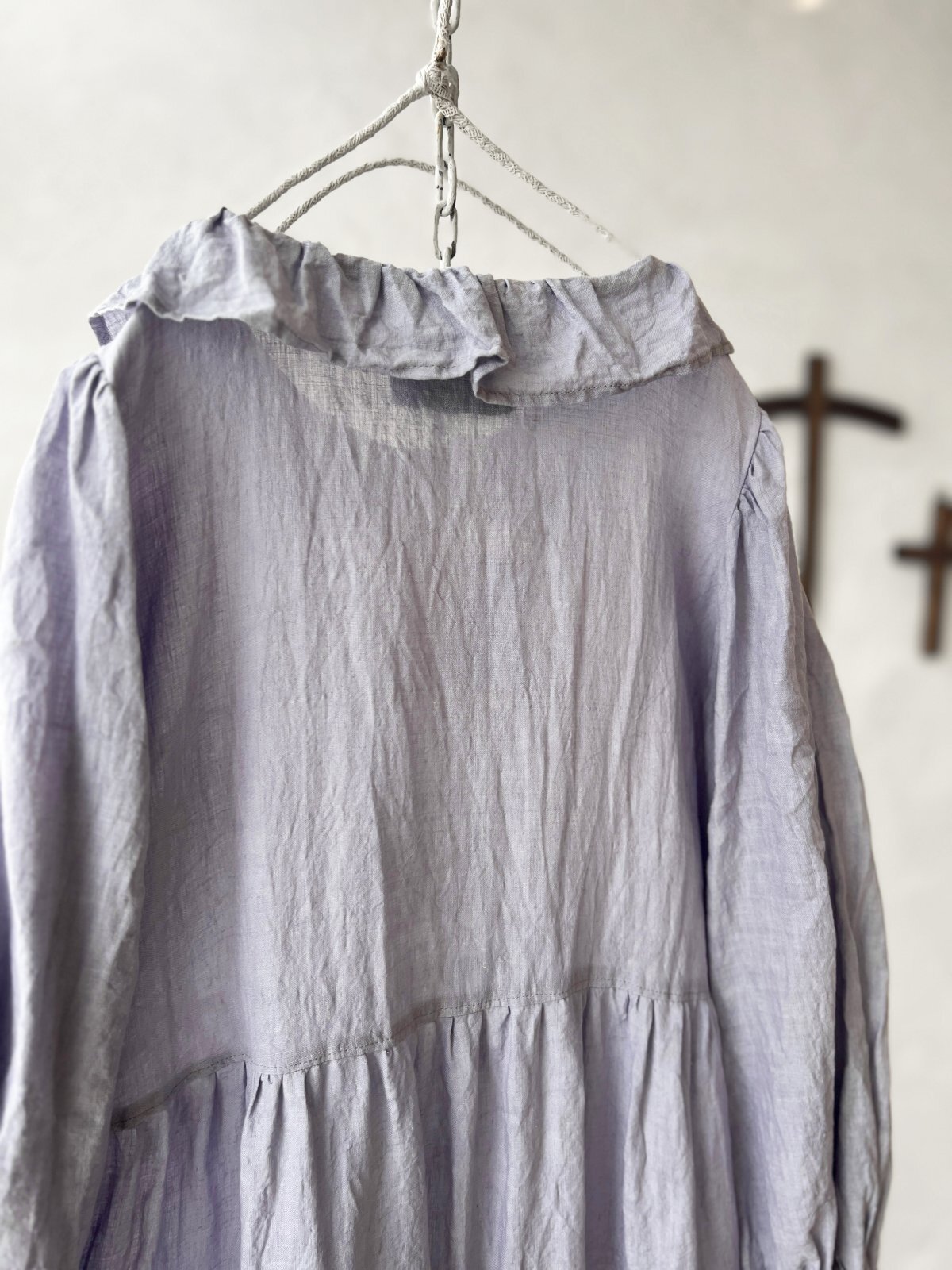薄手のリネンで、ティアードギャザーが風になびく