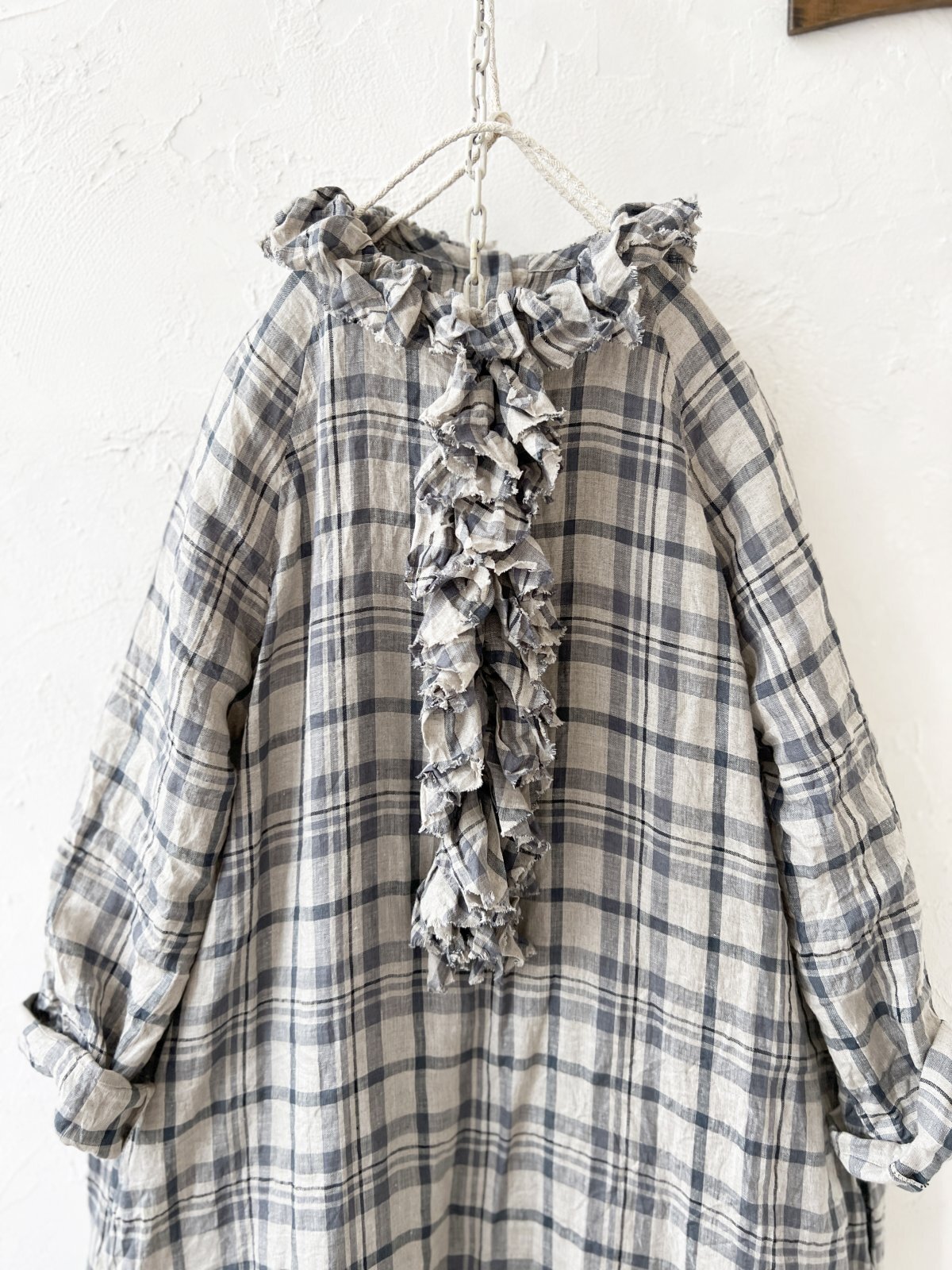 薄手のリネンなので、袖をまくって夏にも