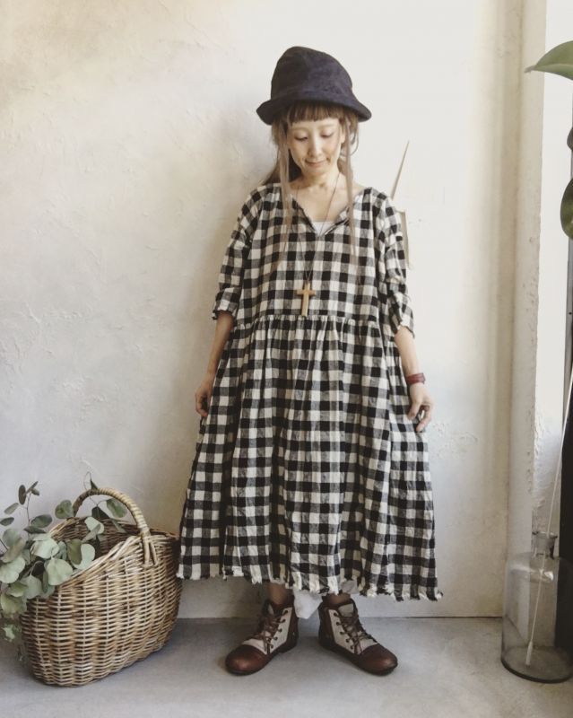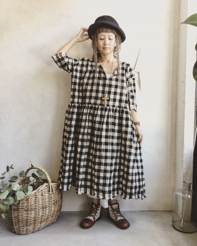 pollenbienco/ブラックギンガムチェック・ワンピース [POL170822]