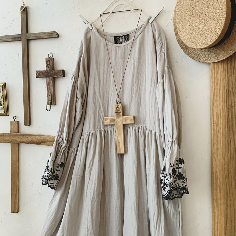 mifumi/Wトロンのワンピース・グレーに黒花 [MIF210833]