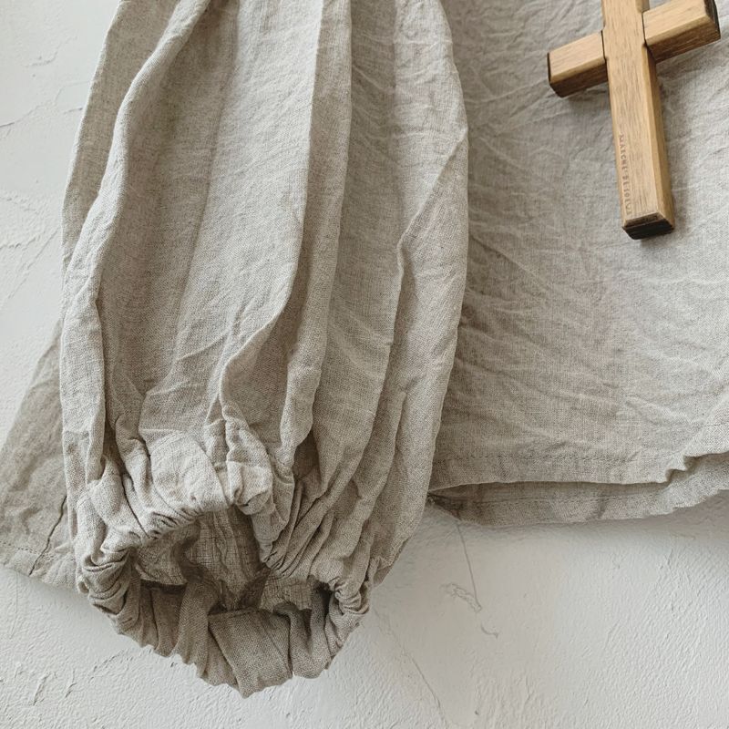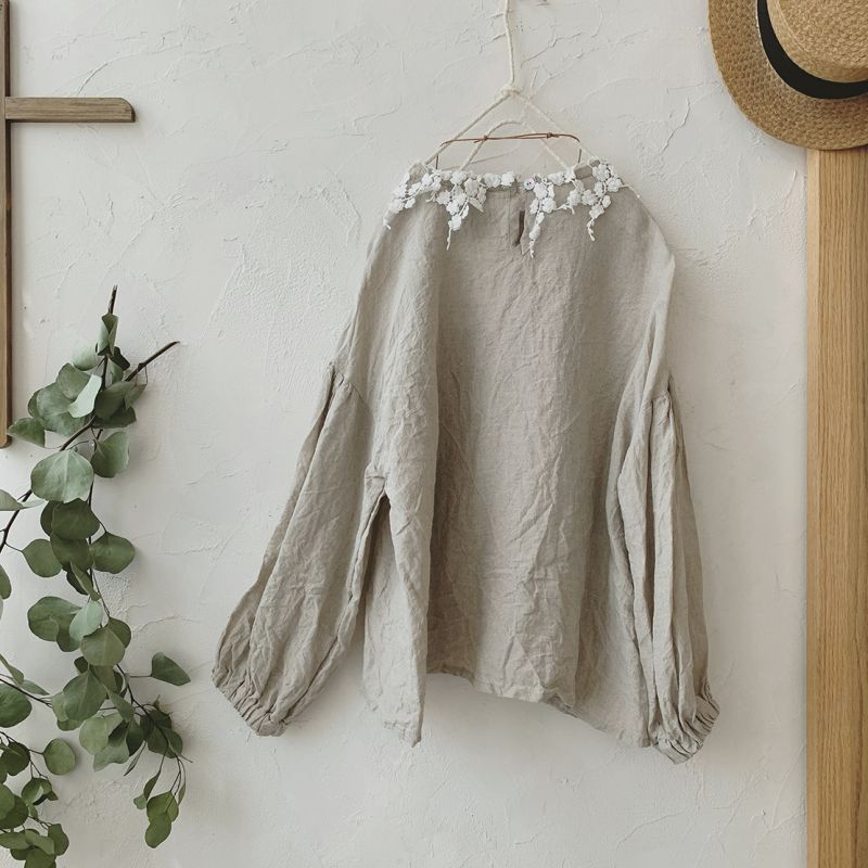 素材:リネン100・レース部分コットン100・黒蝶貝ボタン